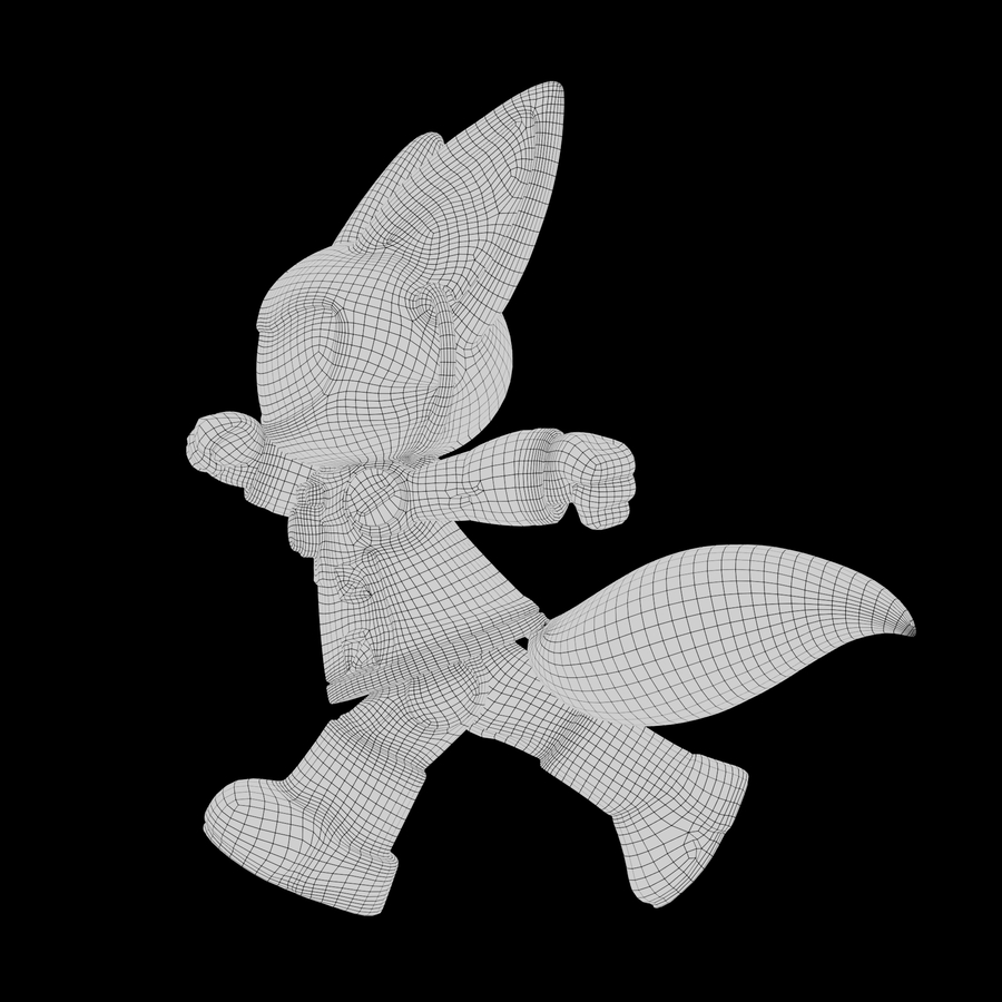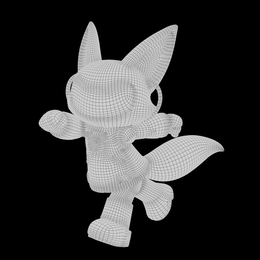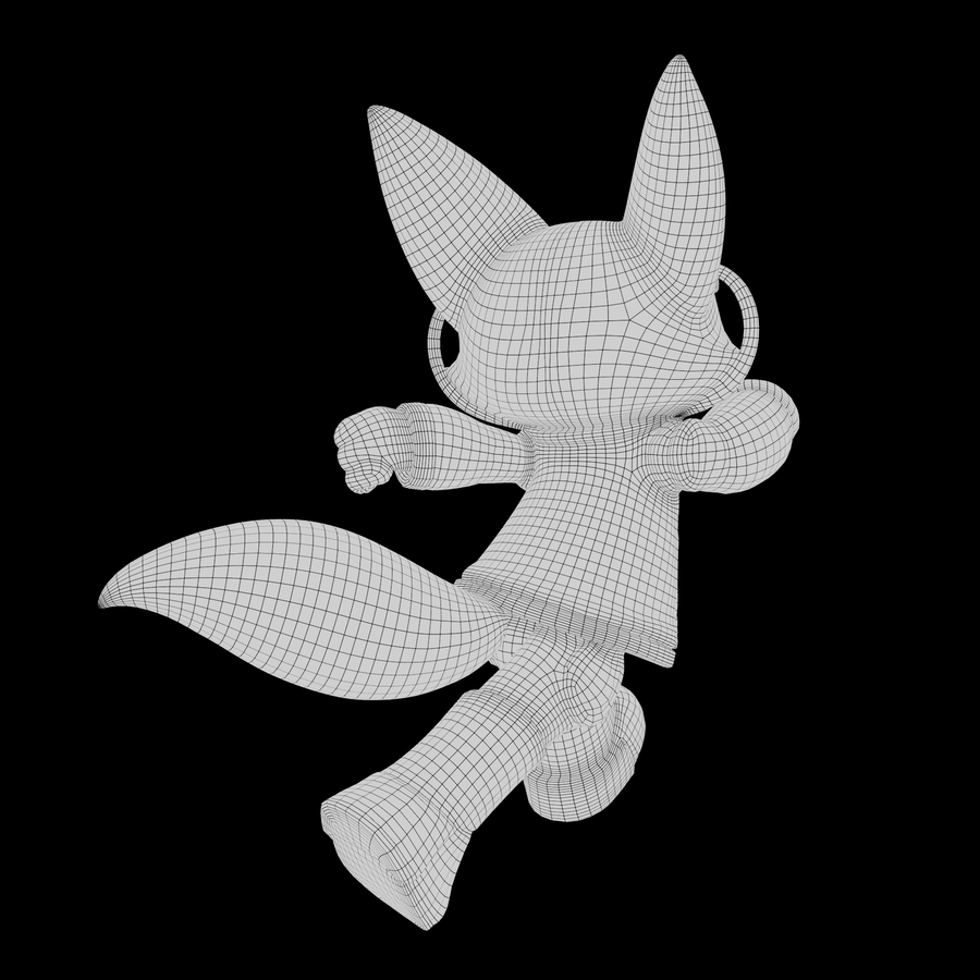 RoboFox, 3D модель с текстурами и с сеткой