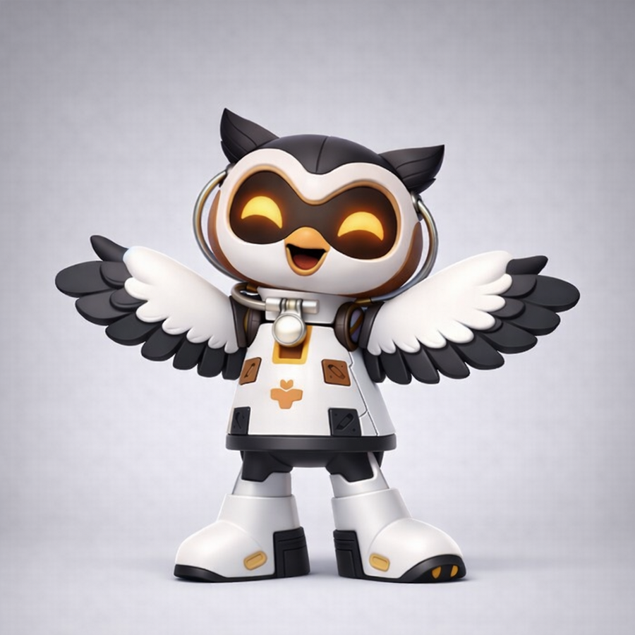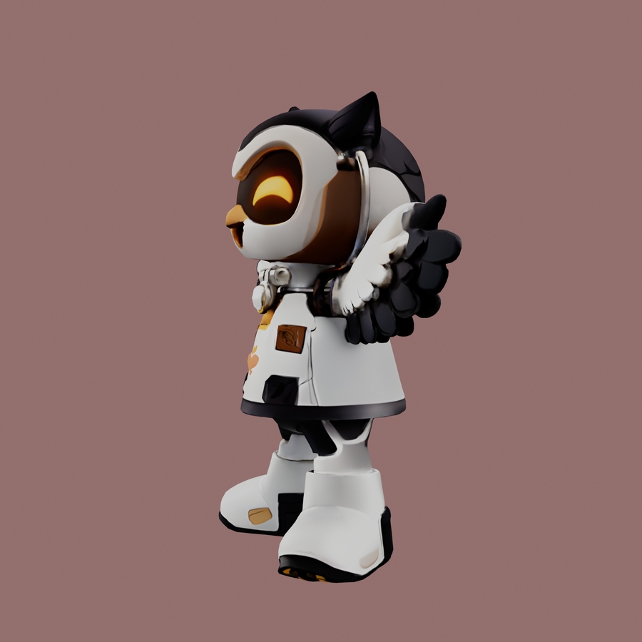 RoboOwl, сгенерированная 3D модель со сгенерированными текстурами
