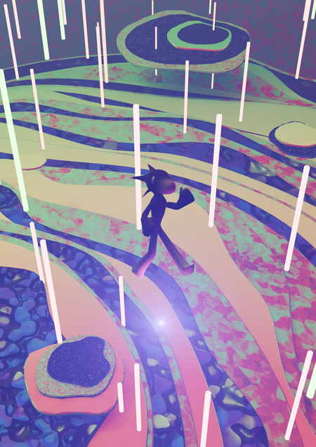 В сияющем царстве полигонов странник одним взмахом заставлял мерцать земли вокруг.