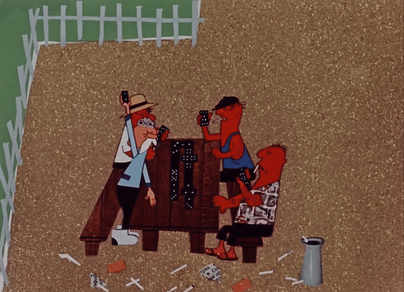 Этой сценой Хитрук говорит о фальши, лебезении и заискивании через ситуационный юмор.