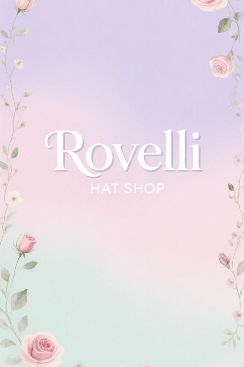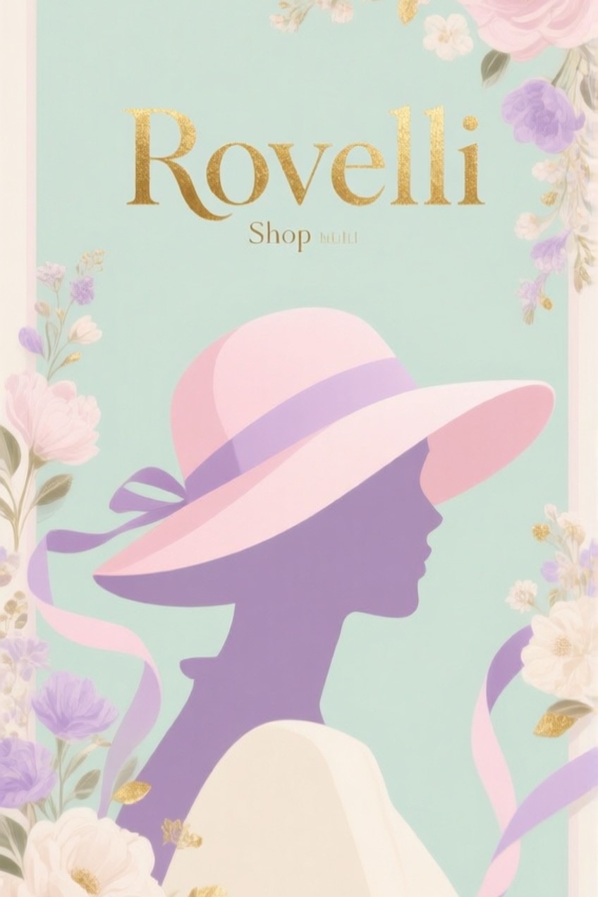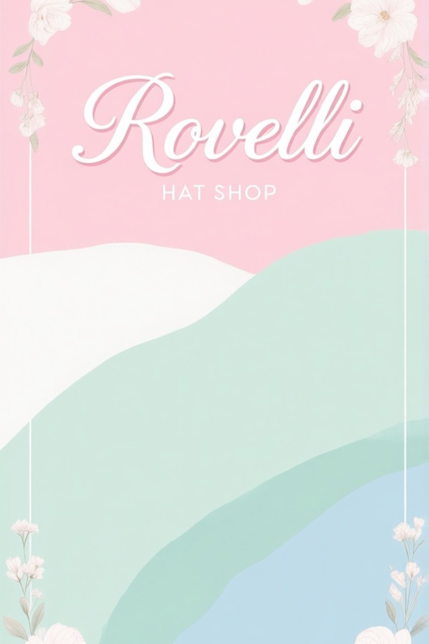 Промт: Make poster for woman hat shop Rovelli, pastel colors with flowers
