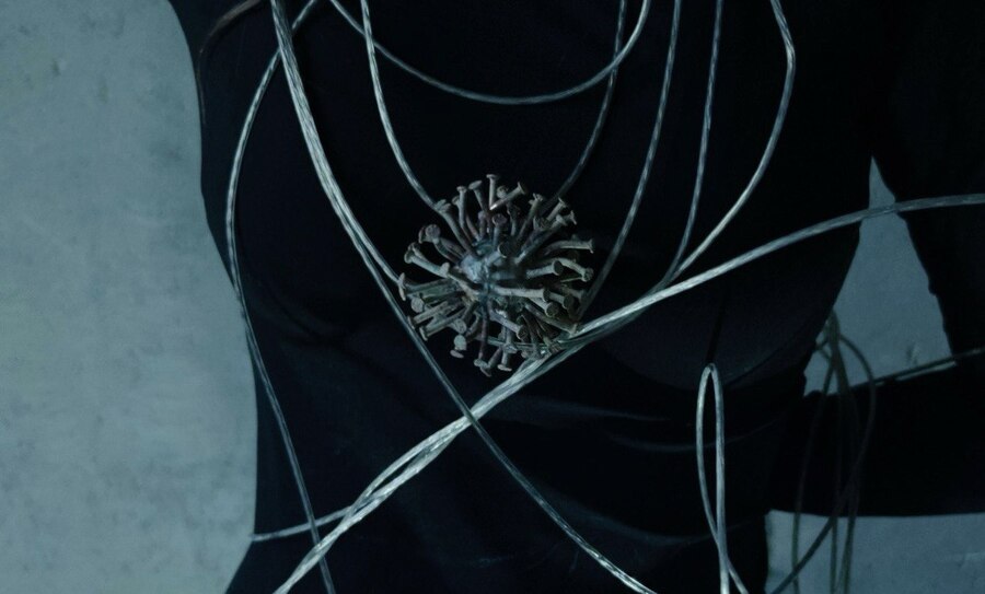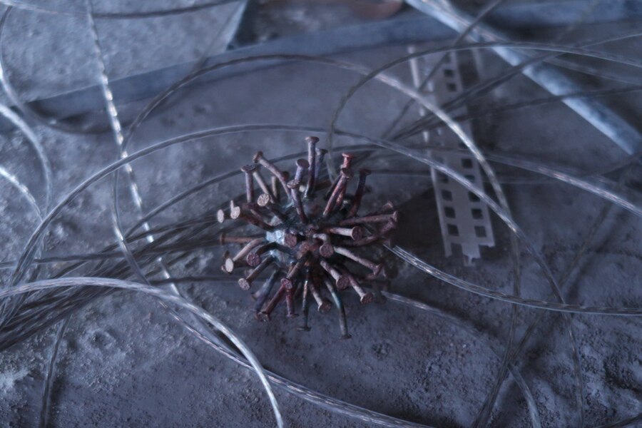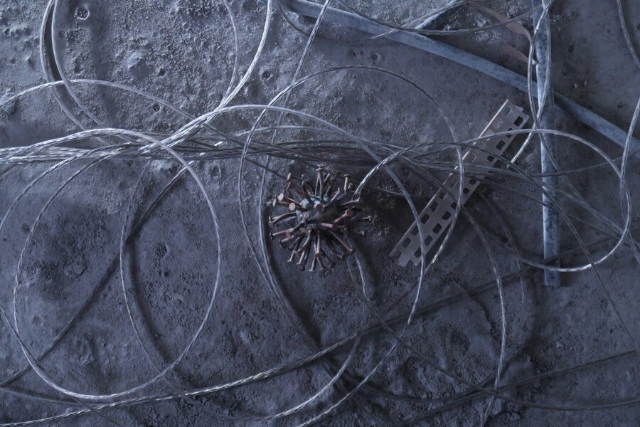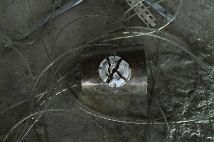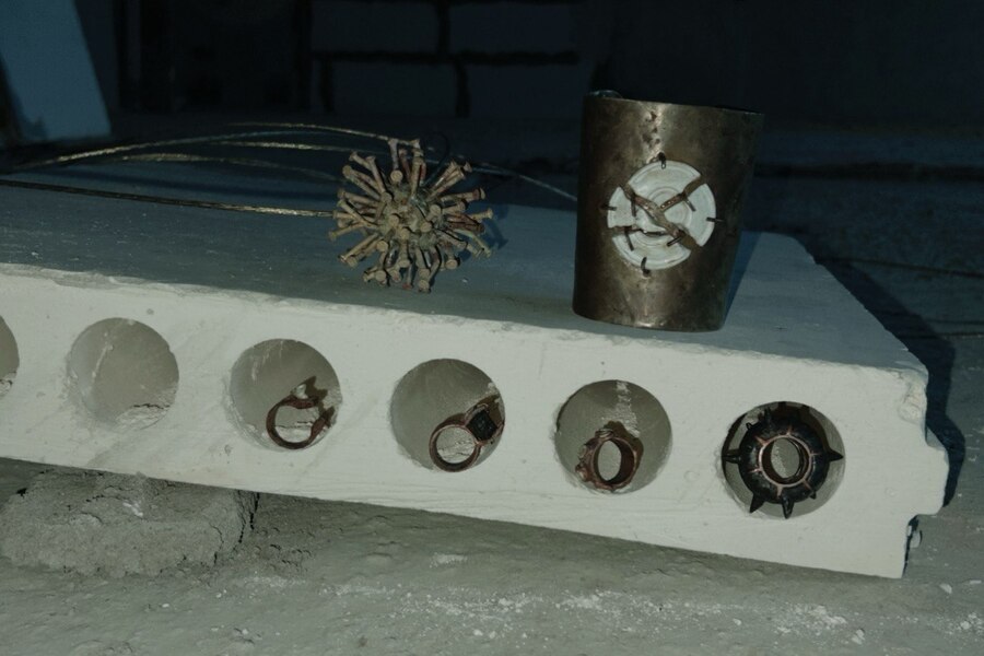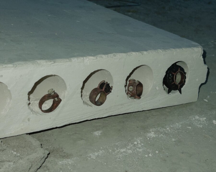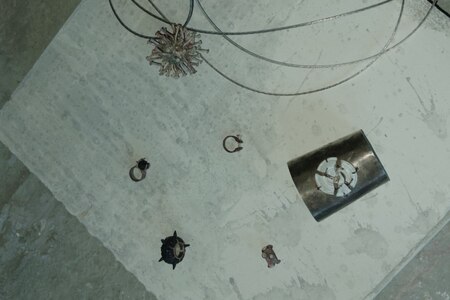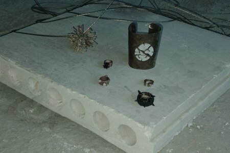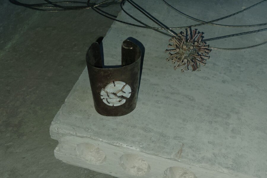 Вставка из керамики в виде расколотого архитектурного медальона, напоминающего элементы облицовки исторических зданий, в сочетании с грубым металлом создает яркое объединение объектов, которые, казалось бы, не имеют ничего общего. Классическая форма, ассоциирующаяся с величием, теперь становится частью состаренного металла. Это символ гармонии между прошлым и настоящим, показывающий, как красота может возникать из разрушения