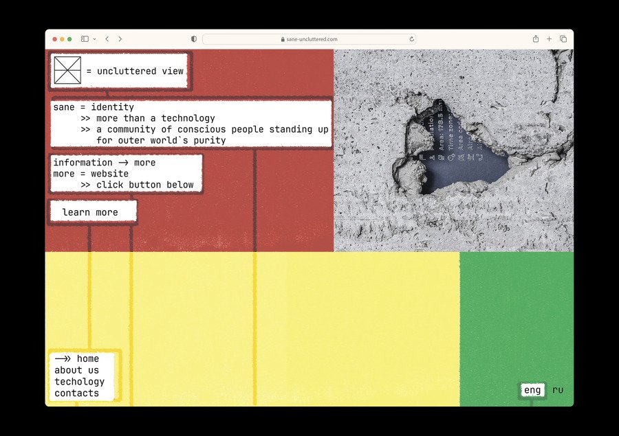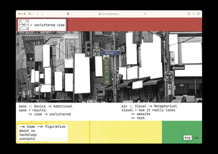 Что если в будущем технологии, достигшие пика развития, позволят менять восприятие человеком среды на нейронном уровне? Видение уже не только биологическое и непосредственное, но также опосредованное и программируемое. Проект Sane это размышление об избавлении от визуального шума в мире, где интерфейс мозг-компьютер стал обыденностью.