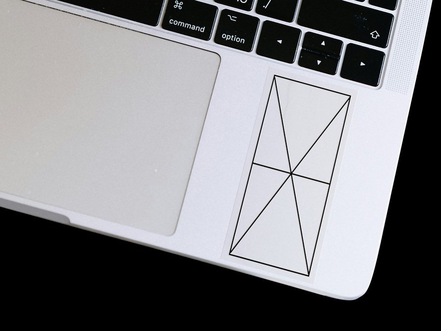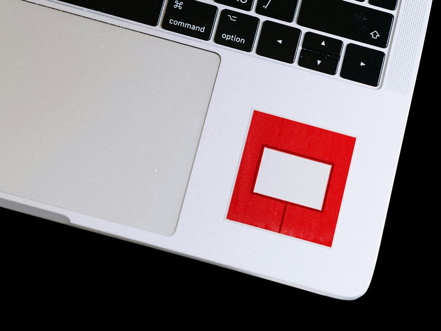 Логотип является монограммой из букв названия и отсылает собой на инструмент пустого фрейма в Adobe Indesign. Его место определяется относительно носителя.