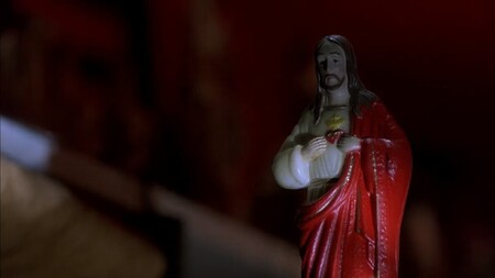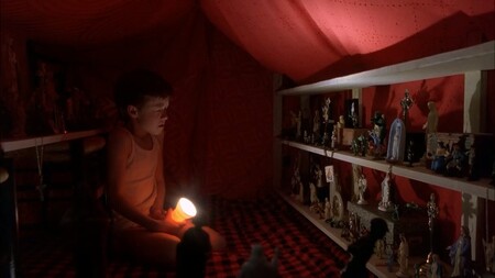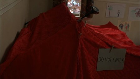 «Шестое чувство» (М. Найт Шьямалан, 1999) По словам самого режиссера красный задумывался им как цвет, символизирующий связь двух миров: нашего и потустороннего. Цвет появляется, когда рядом есть призраки. Однако, как минимум в некоторых сценах он читается иначе (ведь призраки там почти все время, почему тогда красный не все время на экране?). На наш взгляд у красного в фильме разные значения. Коул явно использует красный для защиты от потусторонних сил: красная дверь церкви, где он изначально укрывается от доктора Кроу, в его комнате красная палатка, в которой он прячется от окружающих его мертвецов… Однако, это его не спасает.