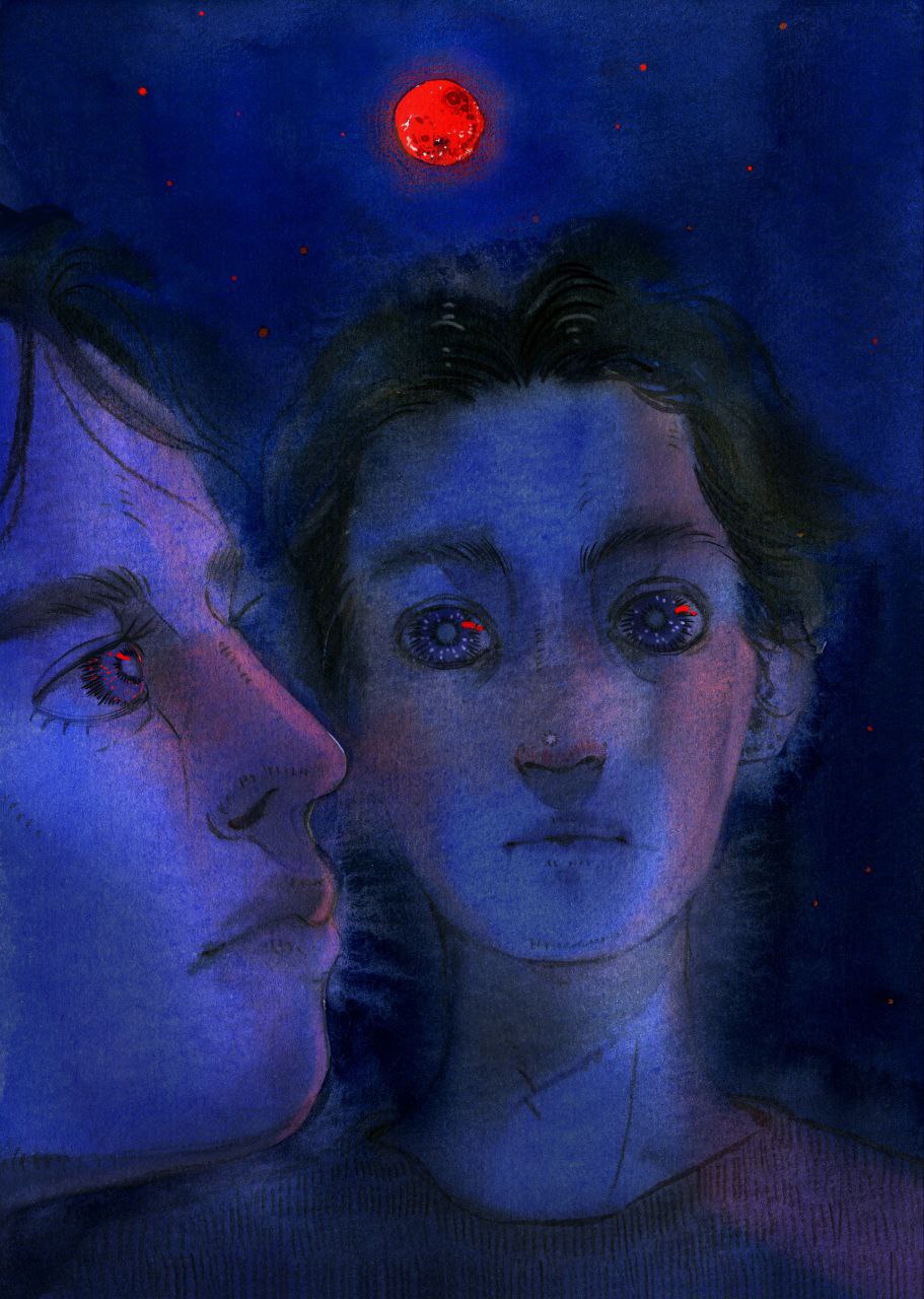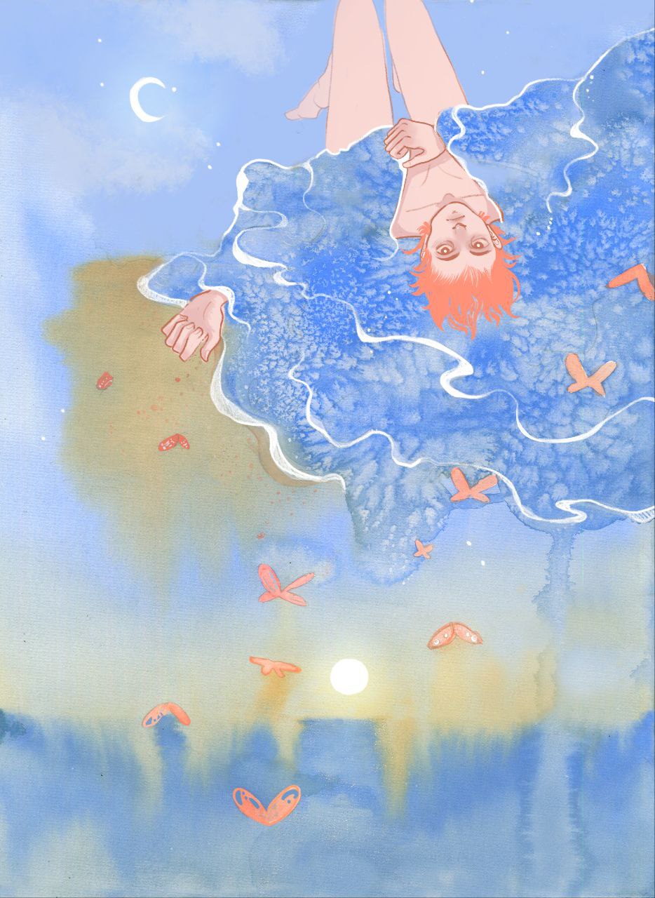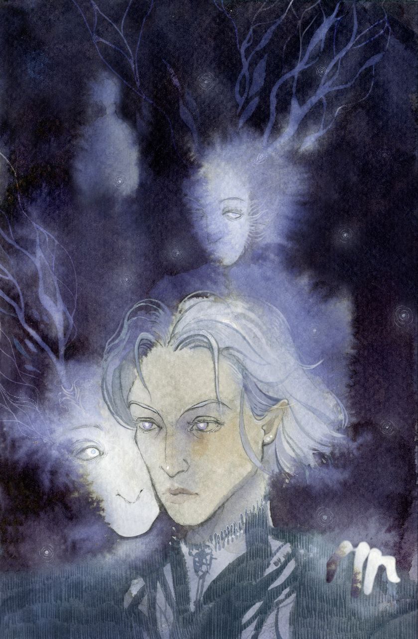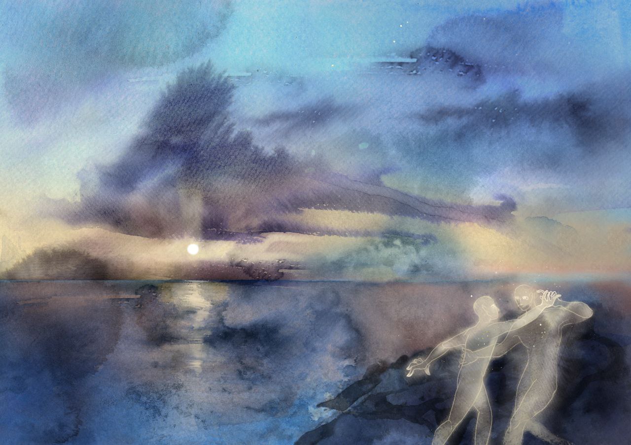Основная идея заключалась в том, чтобы позволить иллюстрациям говорить самим за себя. Акварельная эстетика с её текучестью, мягкими градиентами и непредсказуемостью идеально передаёт дуальность мира новеллы.