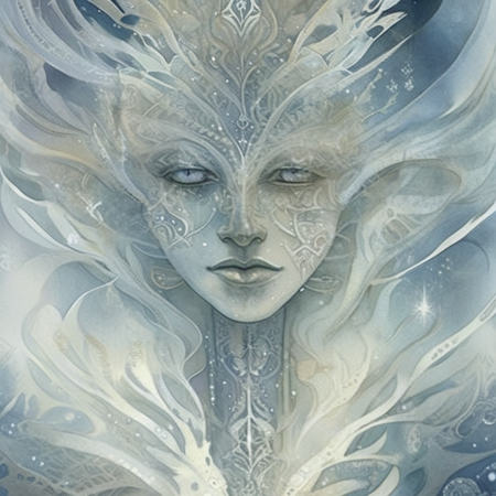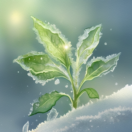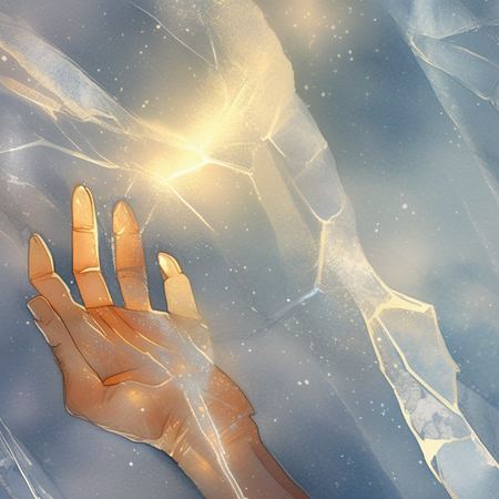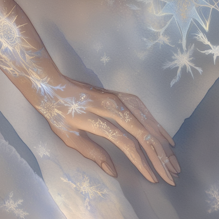 Текстура: Мягкость акварельных размывов (туман, воспоминания) против чёткой, детальной прорисовки льда и кристаллов.