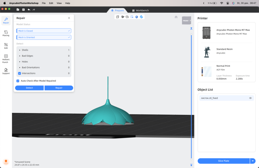 На заключительном этапе я проверила все модели на пригодность к 3D-печати в слайсере: оценила геометрию, устойчивость форм и корректность масштаба. Финальные модели были экспортированы в формат STL и подготовлены для дальнейшего производства.