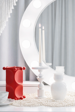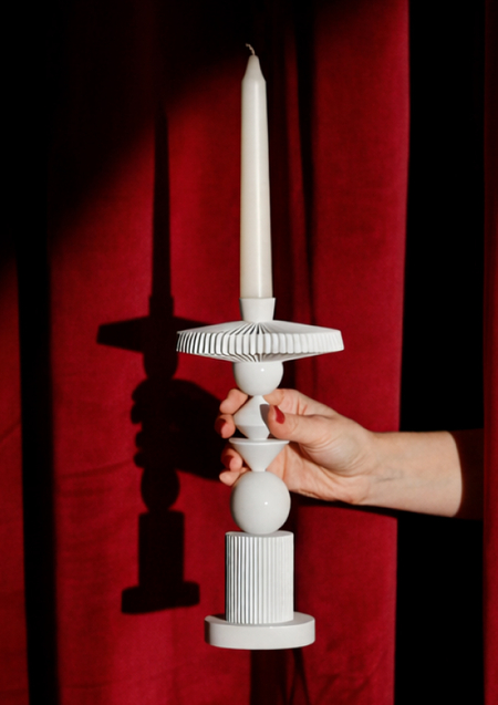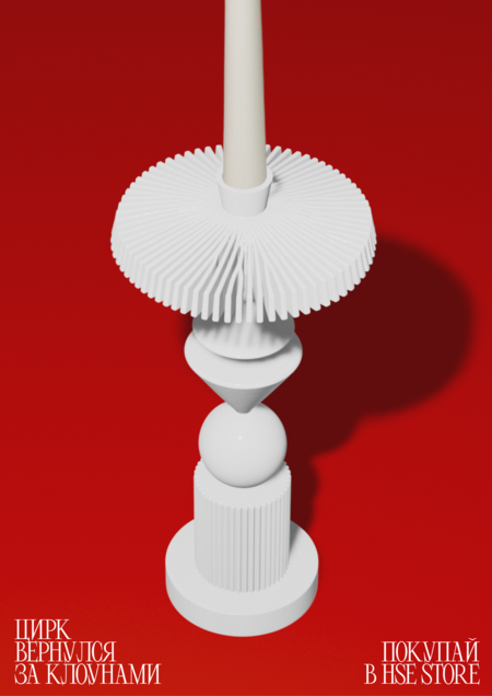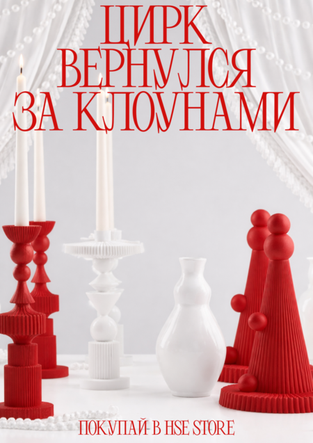 Предметы декора вдохновлены цирковой эстетикой и стилем арт-деко, эпохой, с которой у меня больше всего ассоциируется этот визуальный код. В дизайне предметов геометрические формы, напоминающие реквизит клоунов и фокусников, сочетаются с элементами костюмов артистов и атрибутов цирка. Цвета подобраны чистые и монохромные для поддержания драматического эффекта.