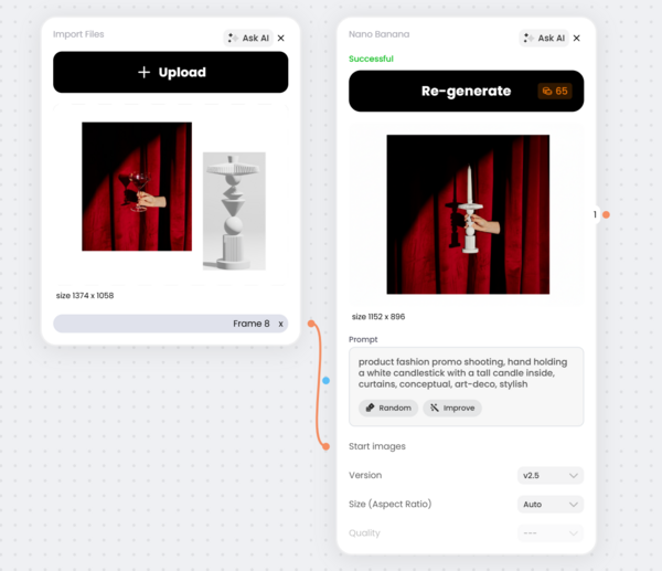 4. Создание промо-изображений Я использовала рендеры сгенерированных моделей, сделанные в Blender, и референсы из Pinterest, чтобы сгенерировать промо фотографии серии изделий. Для этого я использовала Nano Banana, так как это самая доступная из моделей с бесплатным доступом, в которой можно комбинировать картинки. Также я использовала ChatGPT и Recraft чтобы исправить мелкие недостатки или добавить небольшие детали на картинку.
