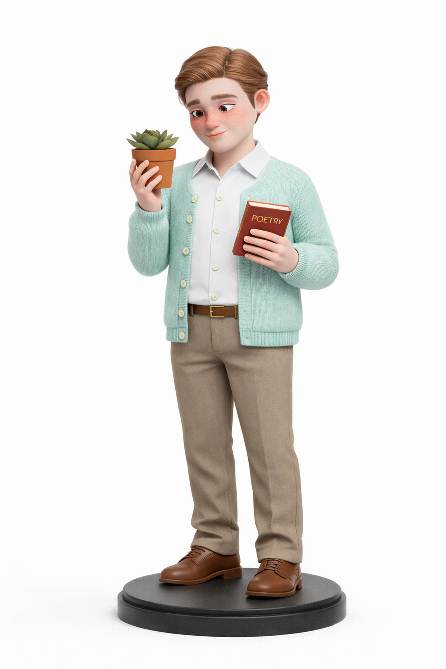 Серия сатирических коллекционных фигурок, визуализирующих популярные в среде зумеров типологии парней. Каждый персонаж — узнаваемый архетип с характерными чертами внешности и атрибутами. Серия сочетает юмор, социальную наблюдательность и современный визуальный язык.