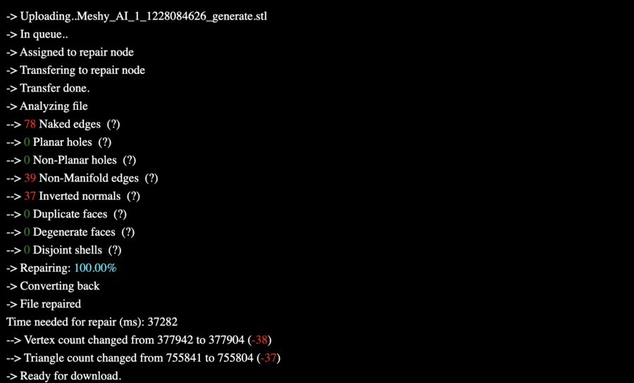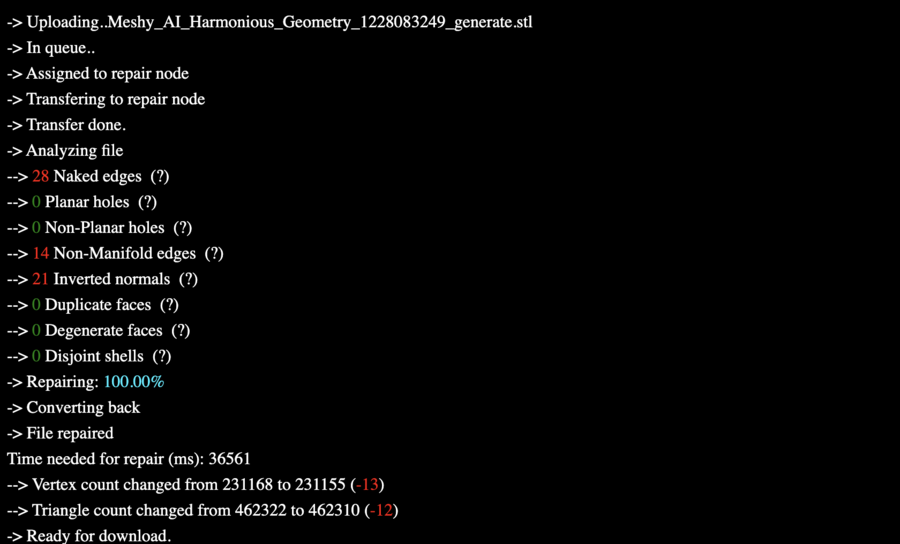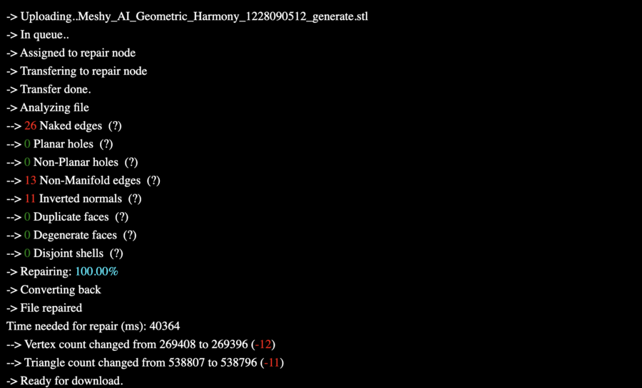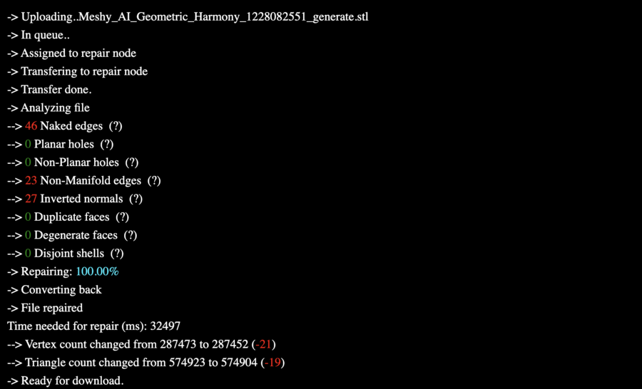 Готовые модели были преобразованы в формат STL и протестированы на соответствие требованиям 3D-печати с помощью онлайн-сервиса Formware Online STL Repair. В процессе тестирования были автоматически обнаружены и устранены ошибки в геометрии, а также улучшена структура моделей.