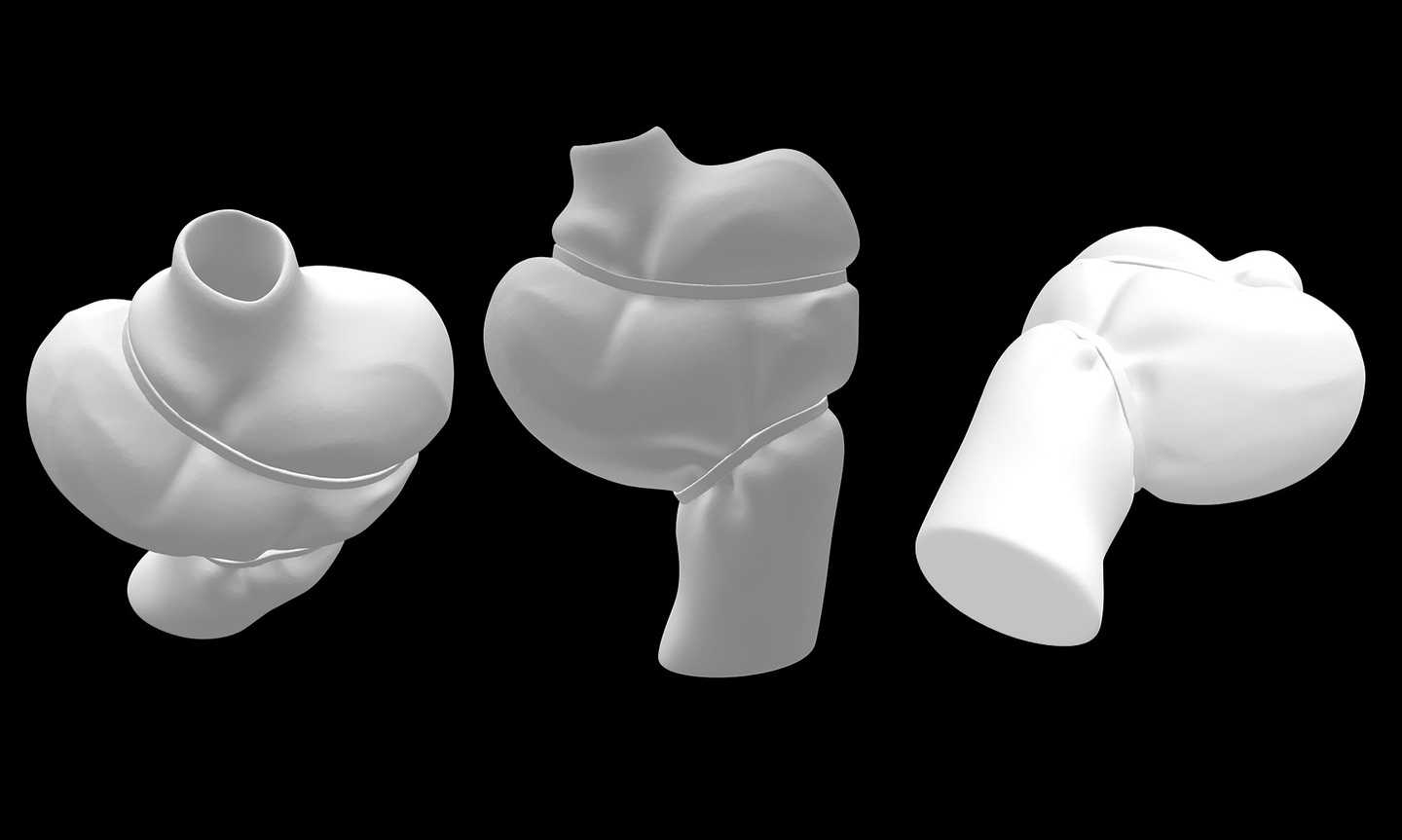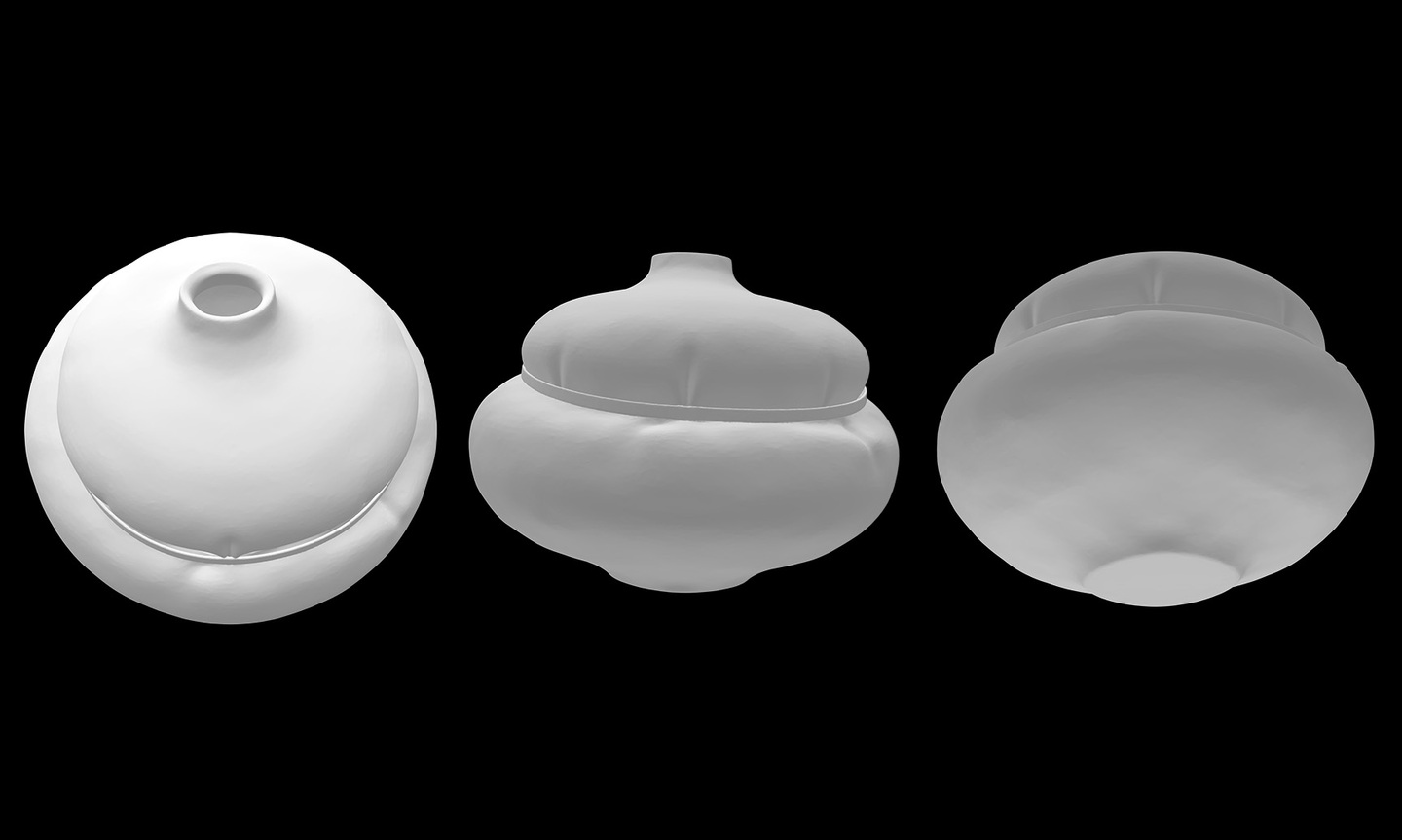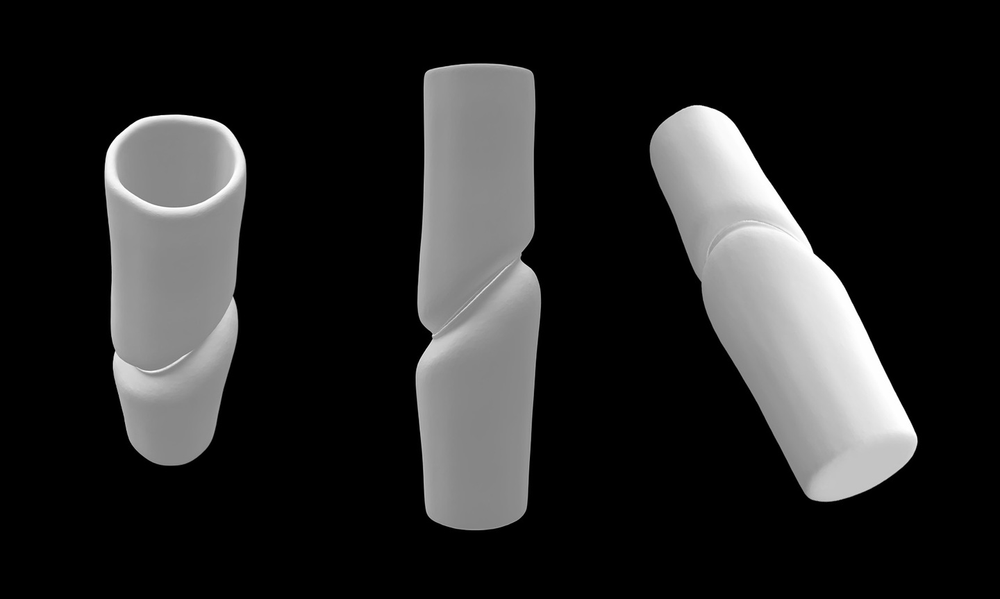 Форма каждой вазы построена на идее сжатия, натяжения и внутреннего давления, зафиксированного в объёме. Изделия ориентированы на визуальное и тактильное восприятие и не предполагают интенсивную утилитарную эксплуатацию.