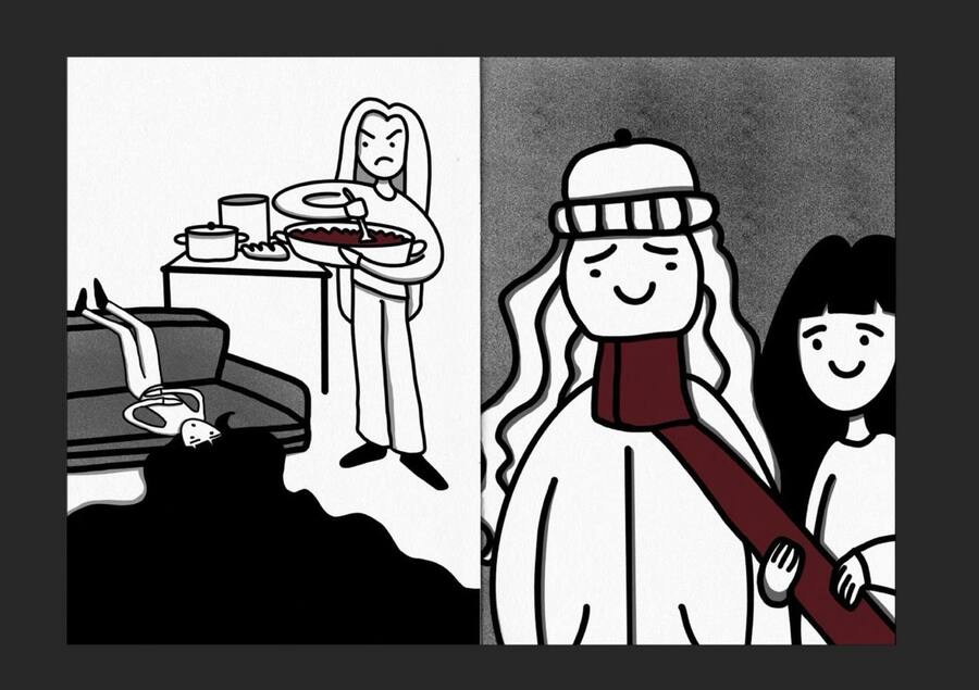 Мой комикс рассказывает о жизни сестёр — полной шума, смешных моментов, маленьких бед и искренней любви. Пусть они иногда злятся друг на друга и выражают чувства по-своему, но в глубине души всегда остаются самыми близкими людьми.