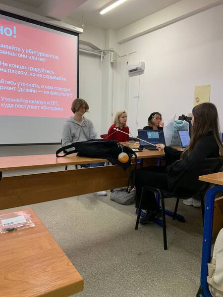 Все эти обязанности накладываются помимо собственных учебных проектов и других дел. Это действительно высокая нагрузка, которая отчасти забирает часы сна и приносит стресс, но оно того стоит, если ты понимаешь, зачем и для чего ты этим занимаешься. И мне повезло работать в одной команде с замечательными наставниками «Дизайна» и «Моды» — Ариной Артамоновой и Натой Решетниковой. Мы всегда могли положиться друг на друга в случае форс-мажоров. Ната занималась ведением ведомостей и социальных сетей, Арина помогала с проведением встреч, а я занимался, в основном, организацией встреч и коммуникацией с учебным офисом и приёмной комиссией.