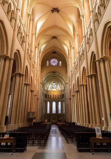 На смену традиционным римским полукруглым аркам приходят готические арки стрельчатой формы с ребристыми нервюрами, которые позволили храму вырасти ввысь.