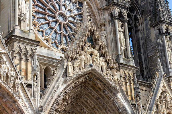 Со временем, в готических соборах появляется больше декоративных элементов. Так, скульптуры Реймсского собора становятся более усложнёнными по сравнению с Шартрским.