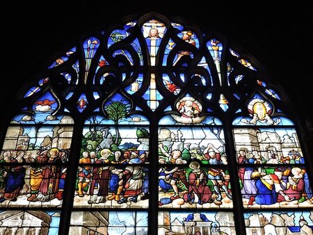 Основной темой для витражей (так же как и для скульптур) стали Библейские сюжеты, иллюстрирующие истории от создания мира до жизни Иисуса Христа.