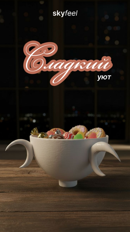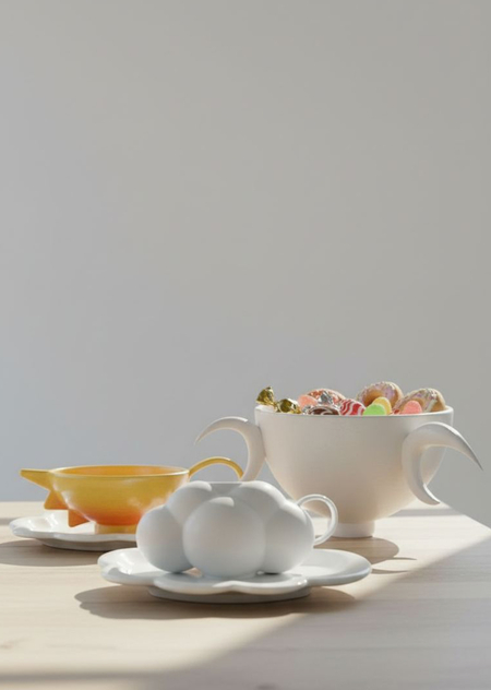 skyfeel — это серия 3D посуды, посвященная небесным объектам: облако, солнце, звезда и месяц. Главной задачей было отобразить форму каждого элемента в чашке, блюдце и тарелке, а также создать модели для 3D печати.