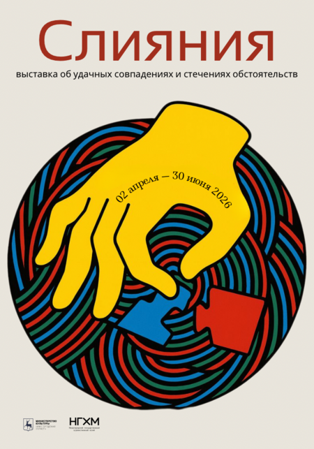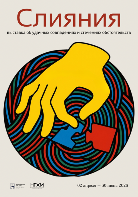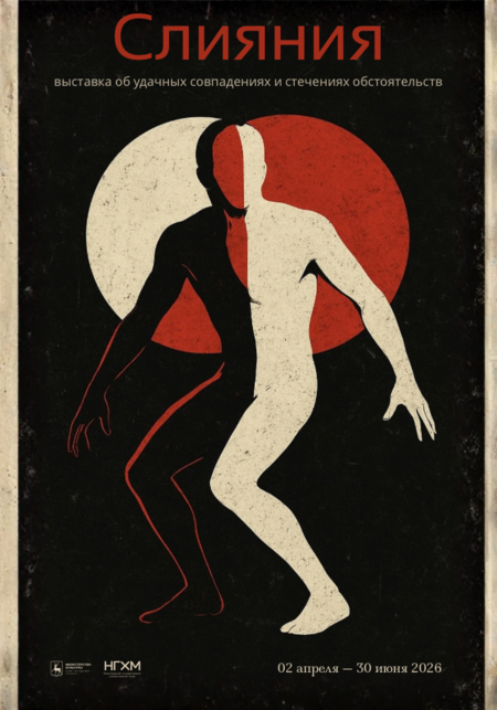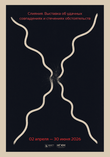 4. Плакат визуализирует идею слияния через две извилистые линии, напоминающие реки или жизненные траектории, которые сходятся в одной точке. Момент пересечения подчеркнут всплеском- метафорой судьбоносного совпадения. Минимализм и контраст усиливают ощущение неизбежности и значимости этого стечения обстоятельств, созвучного истории Нижнего Новгорода как места встреч людей, идей и потоков