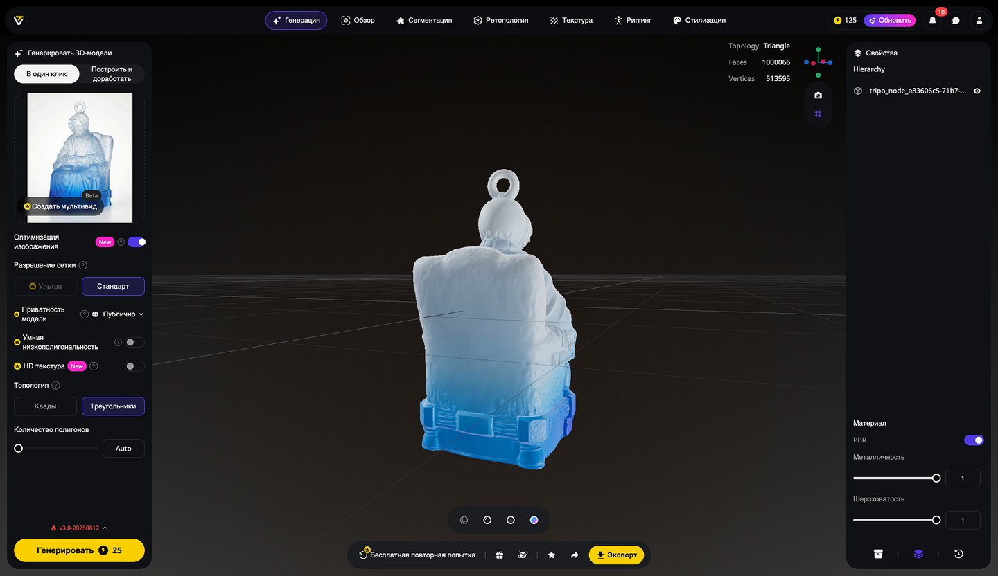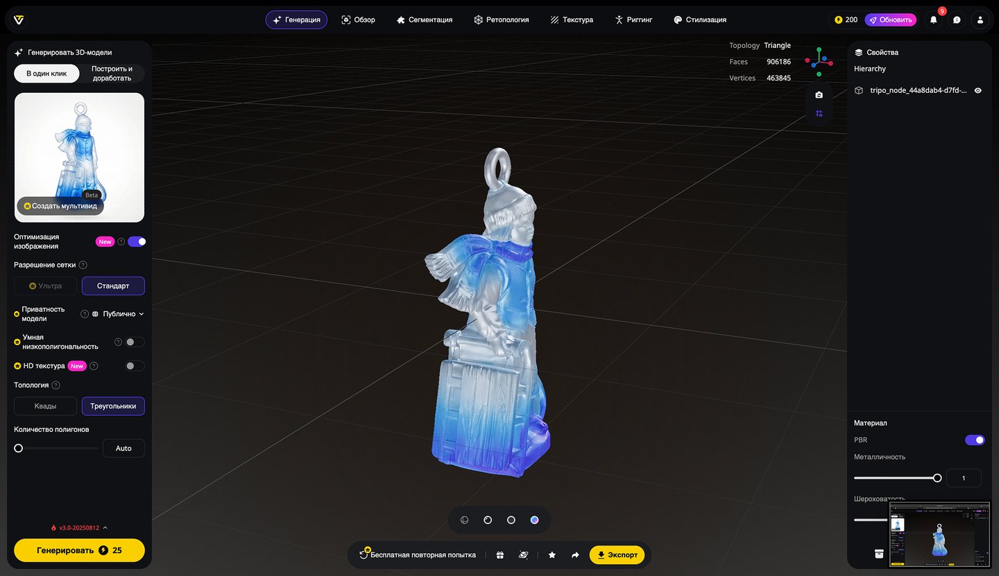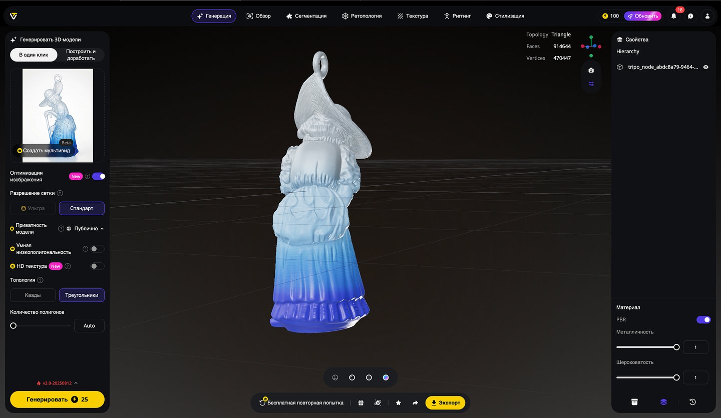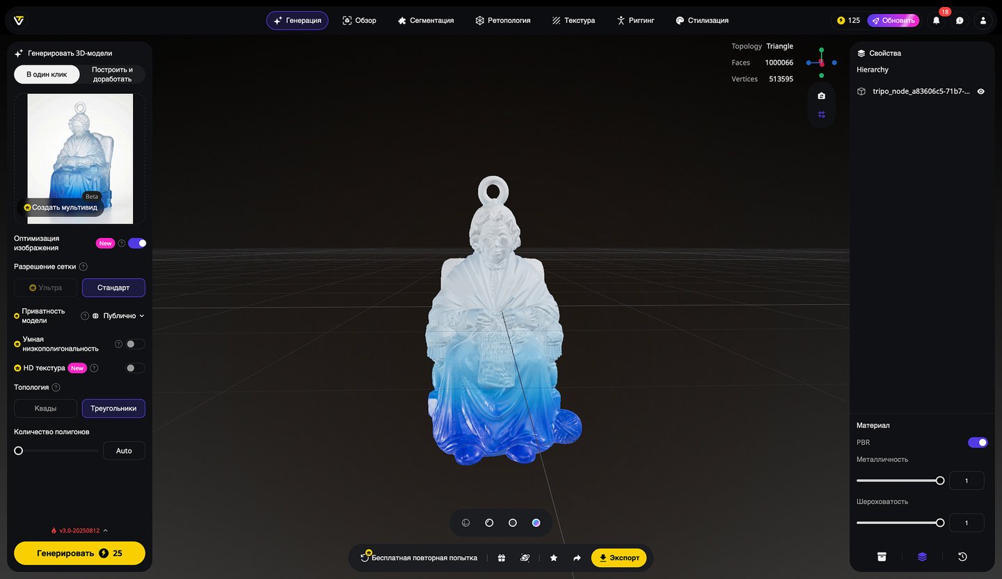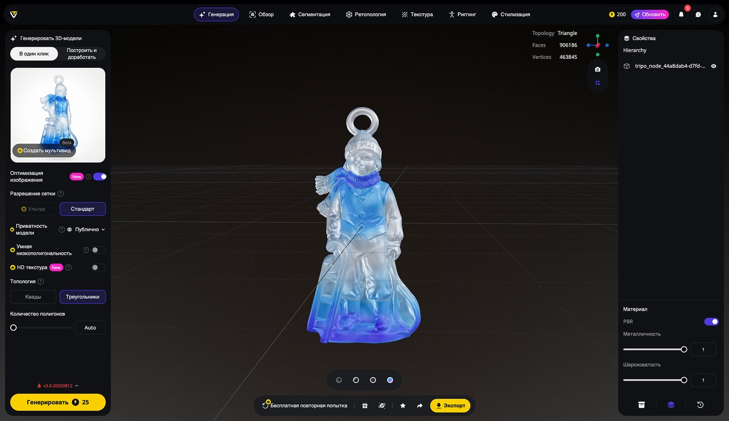 5. Генерация 3D-моделей на основе эскизов игрушек, создание скриншотов 3D-моделей, экспорт в формате STL. Инструмент: Tripo Studio.