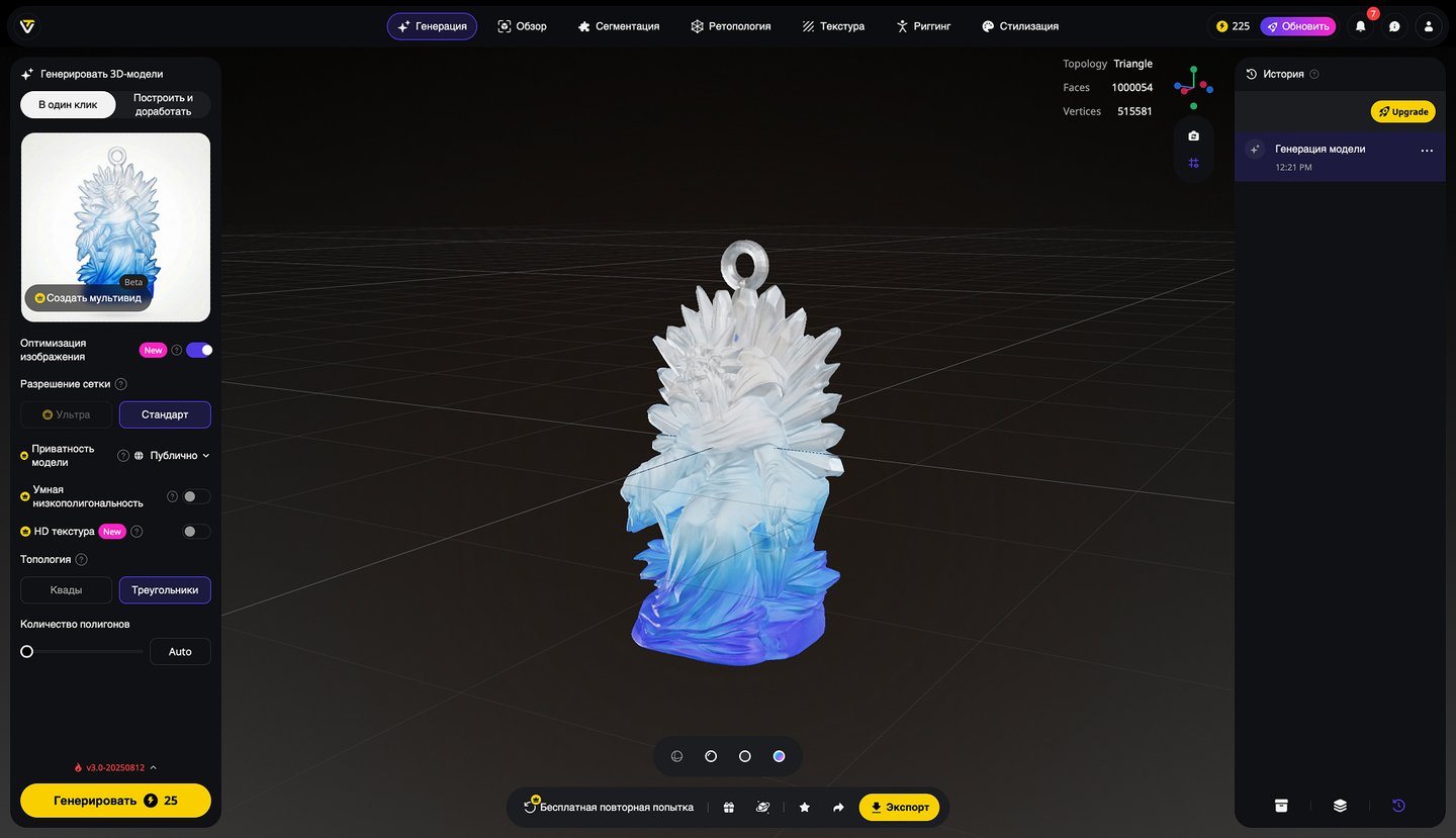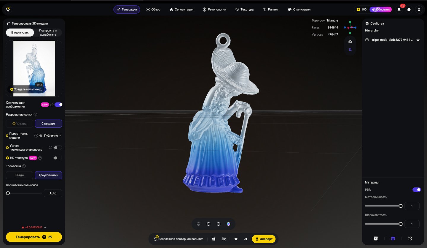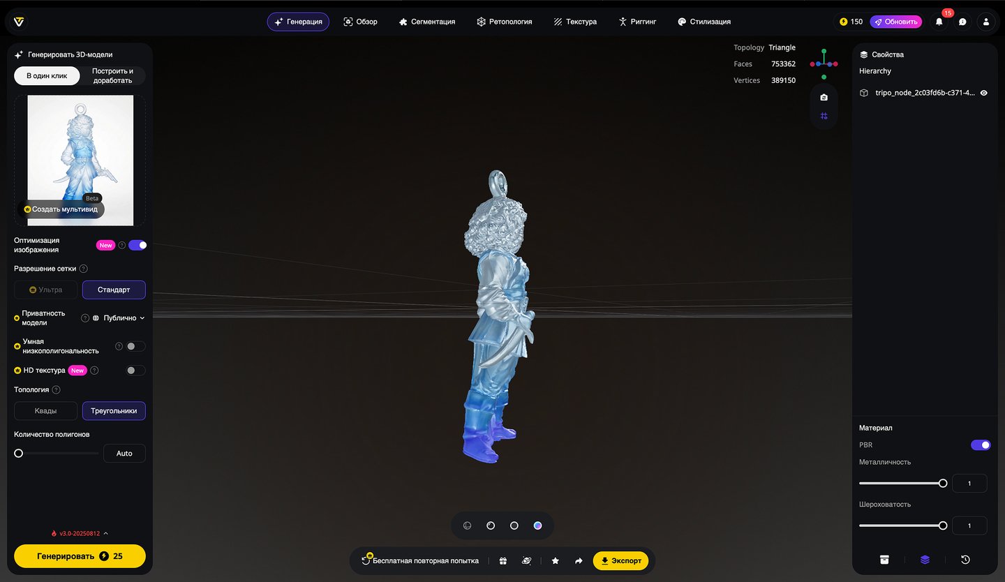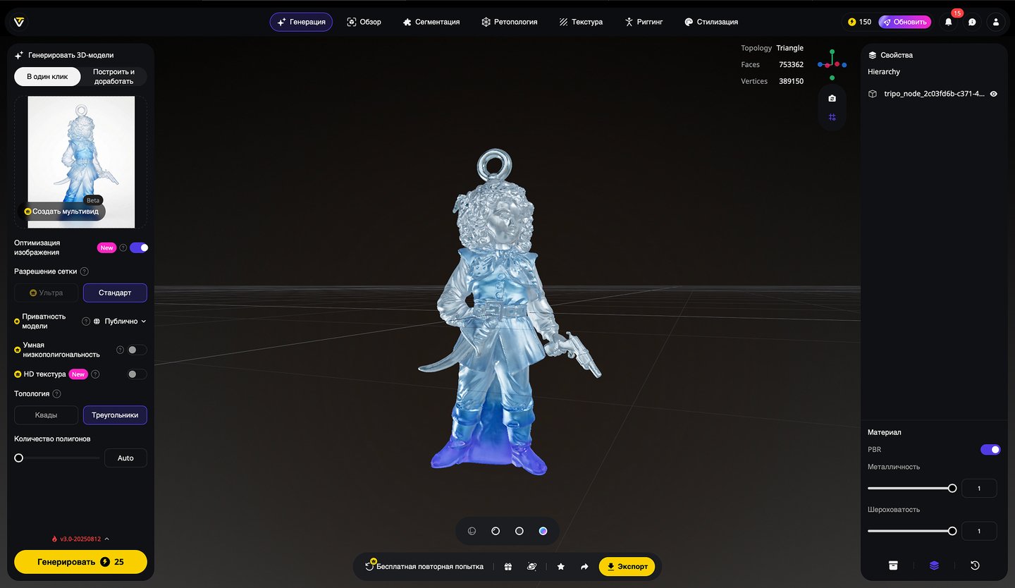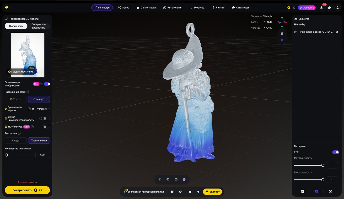 5. Генерация 3D-моделей на основе эскизов игрушек, создание скриншотов 3D-моделей, экспорт в формате STL. Инструмент: Tripo Studio.