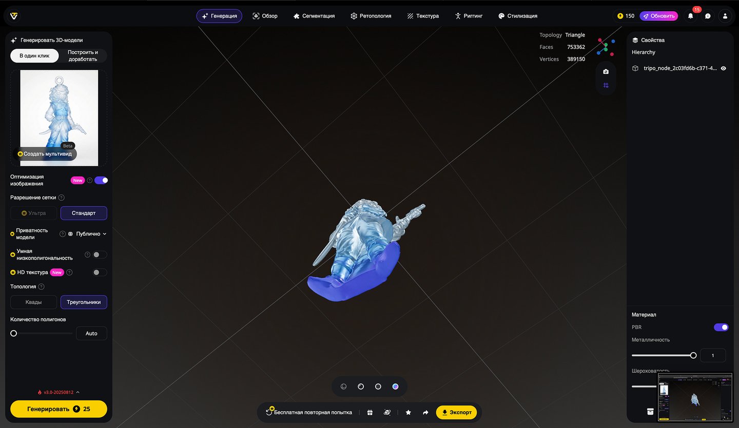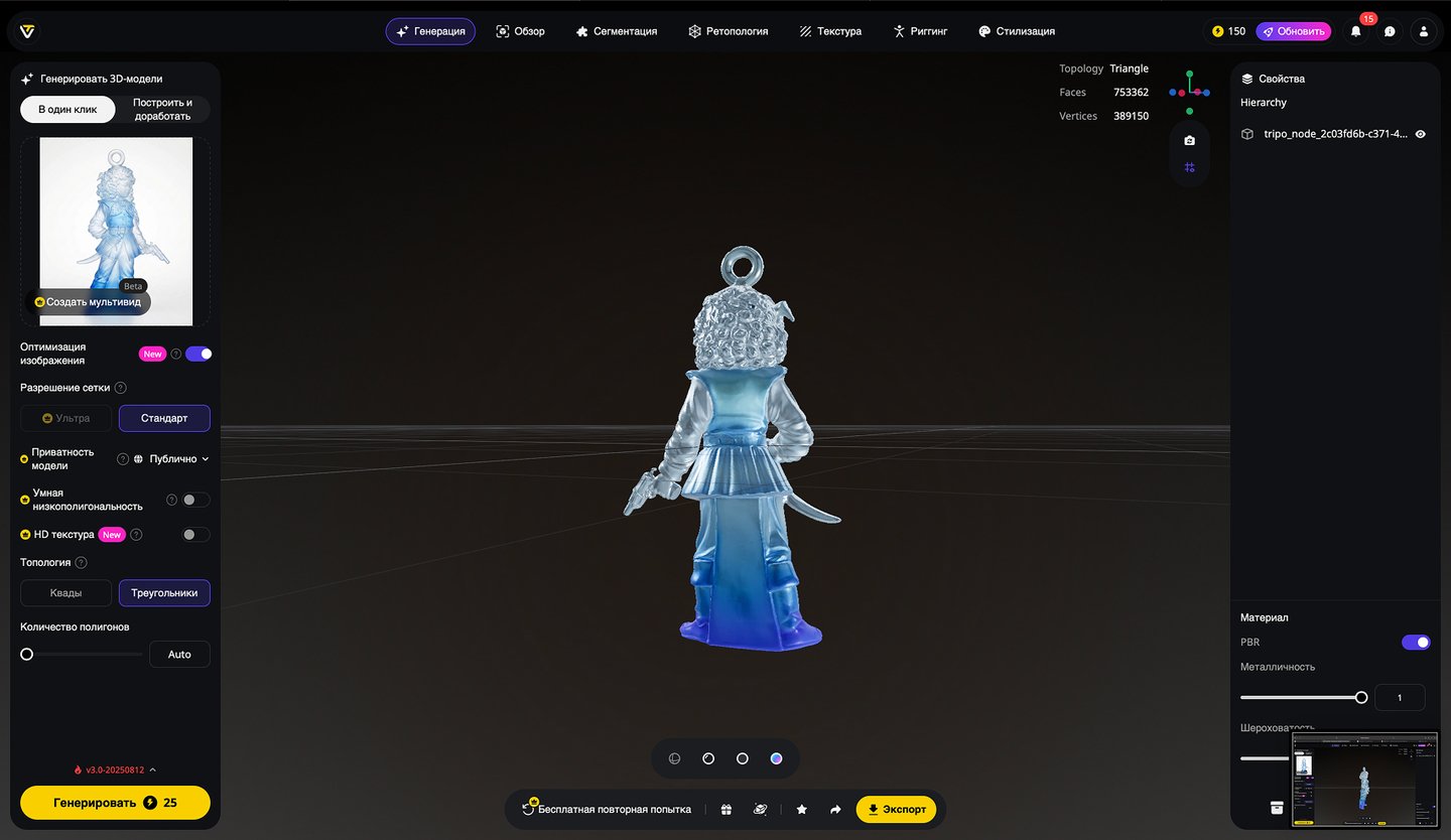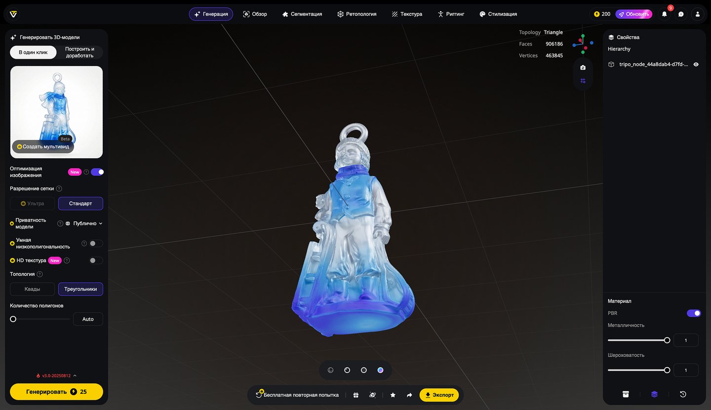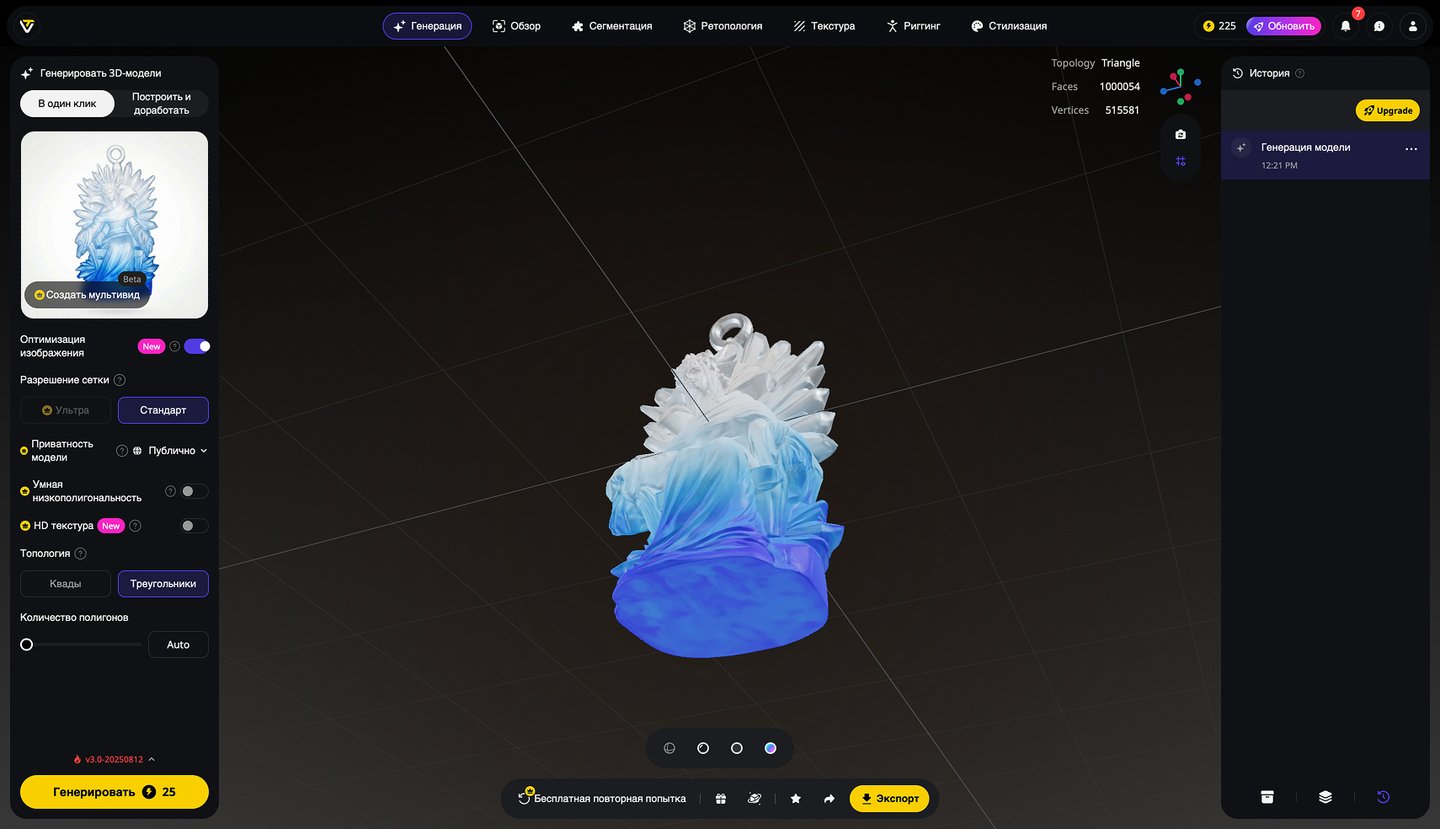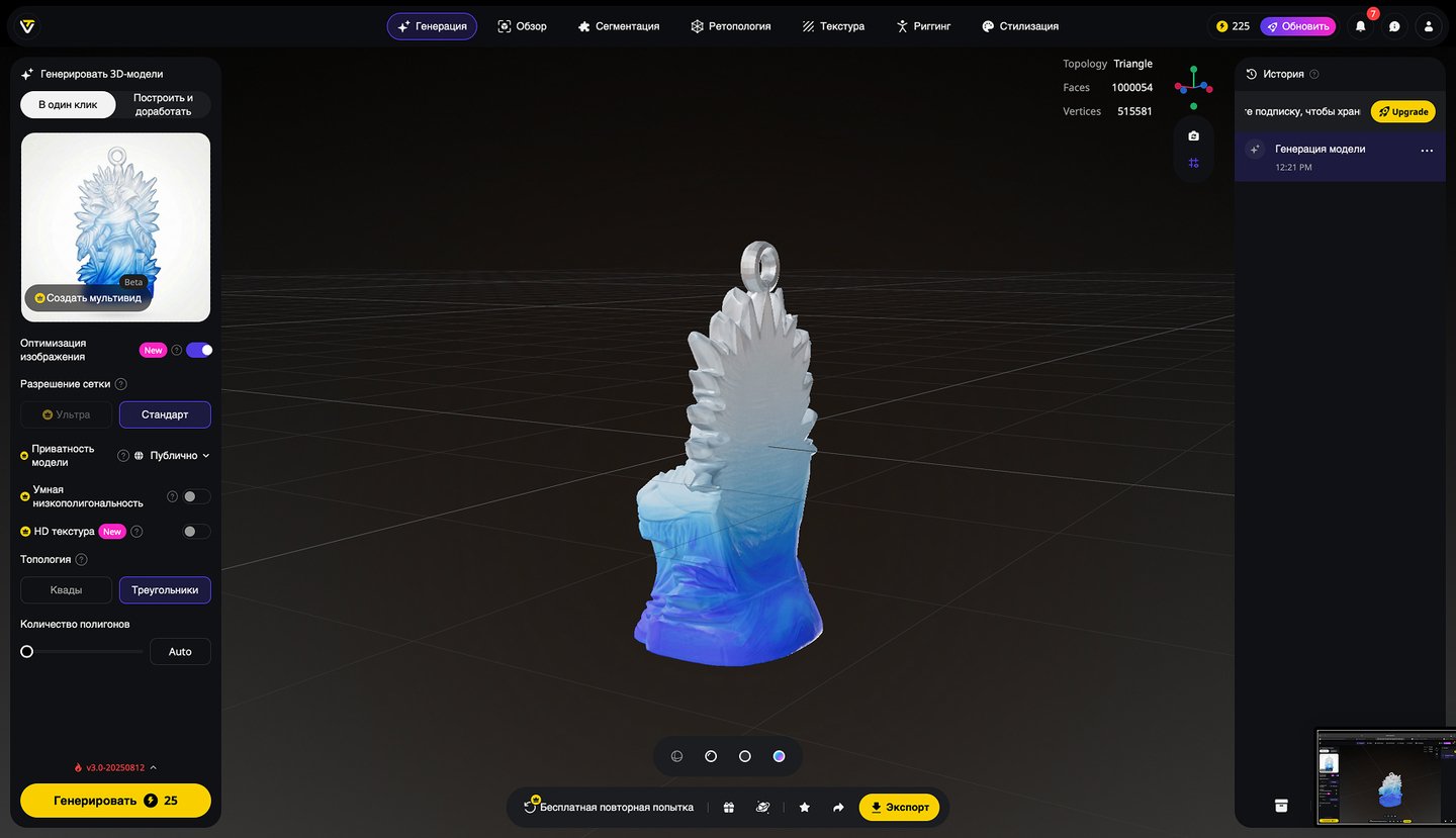5. Генерация 3D-моделей на основе эскизов игрушек, создание скриншотов 3D-моделей, экспорт в формате STL. Инструмент: Tripo Studio.