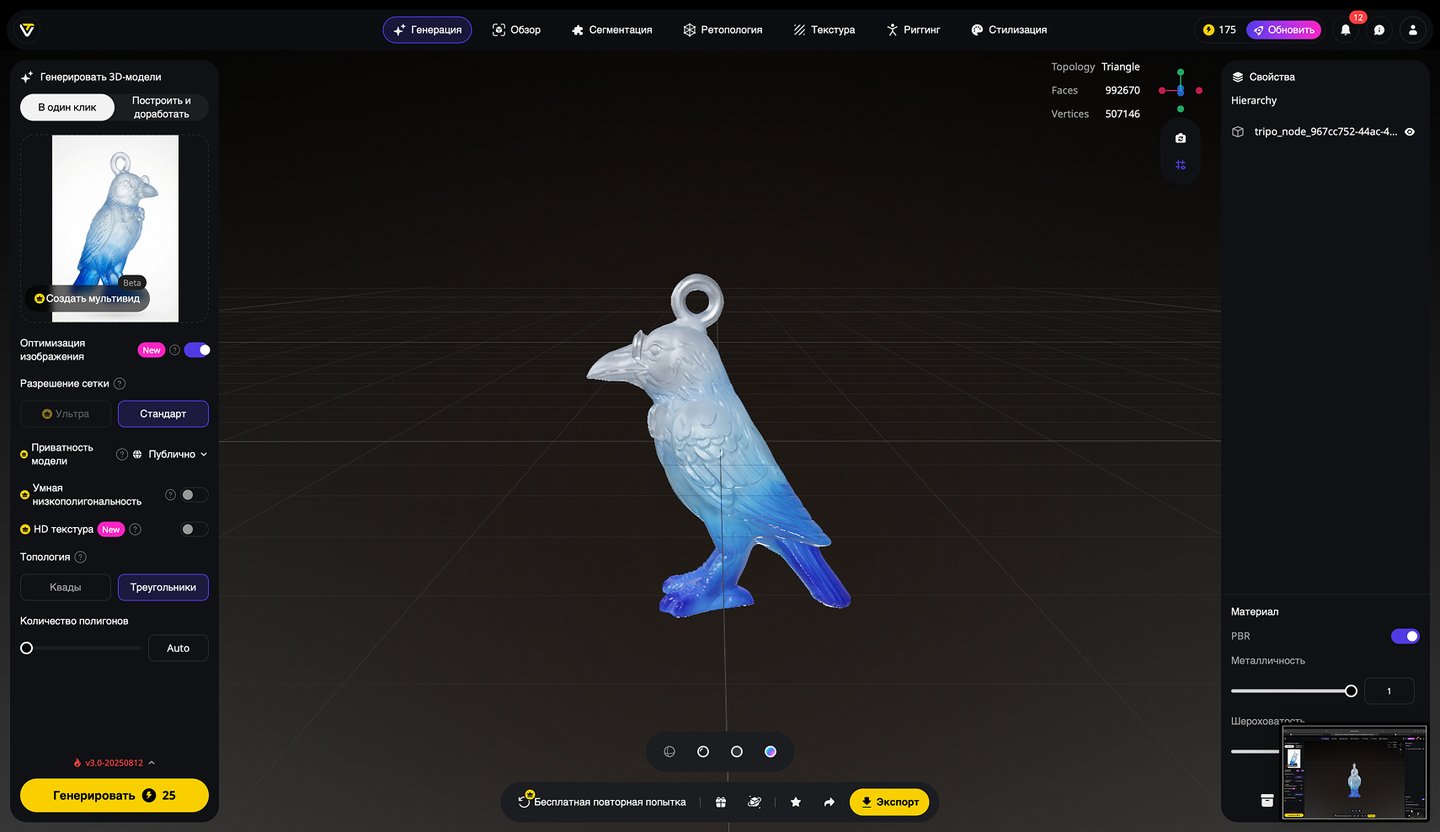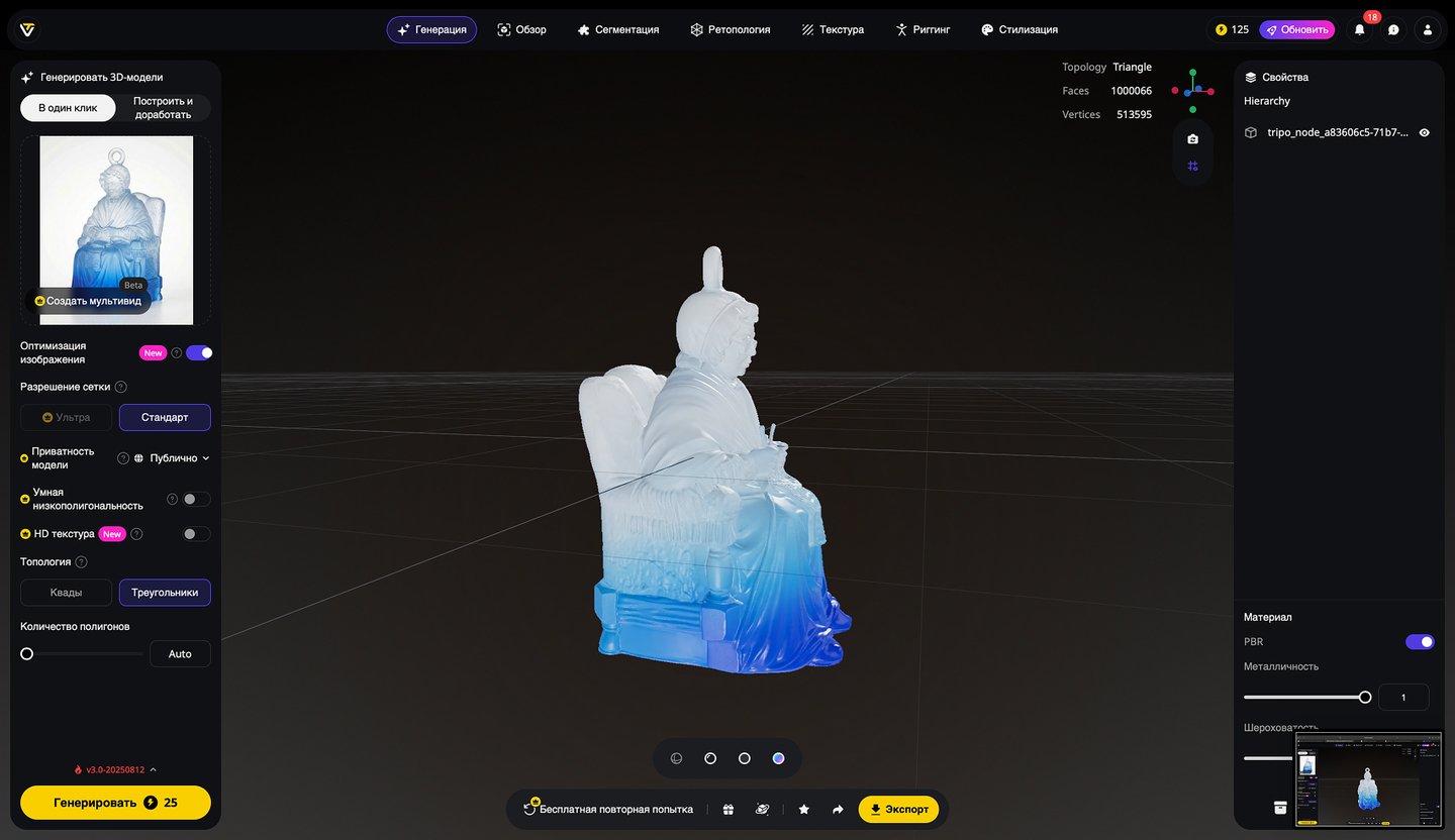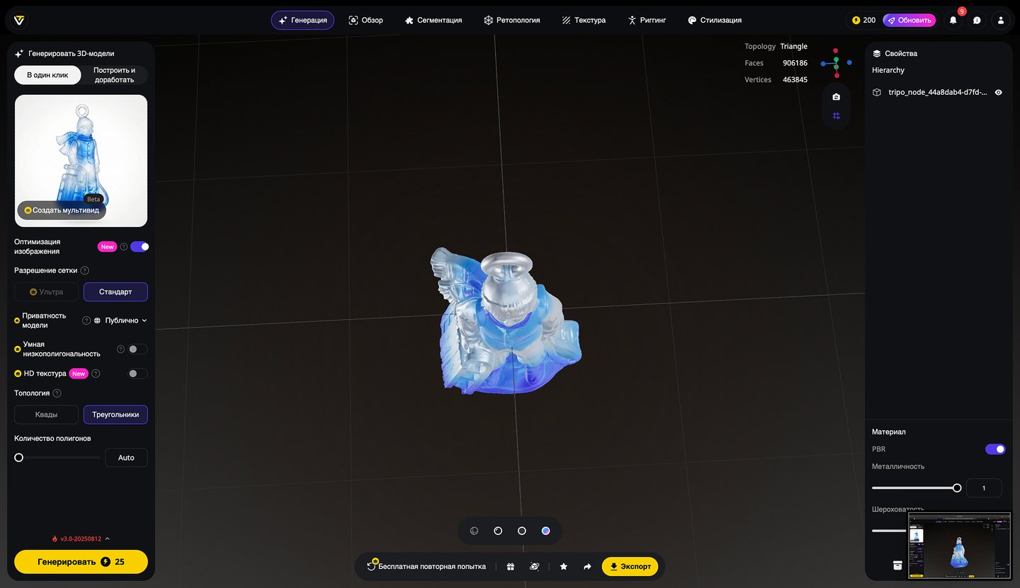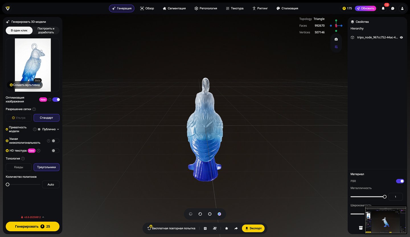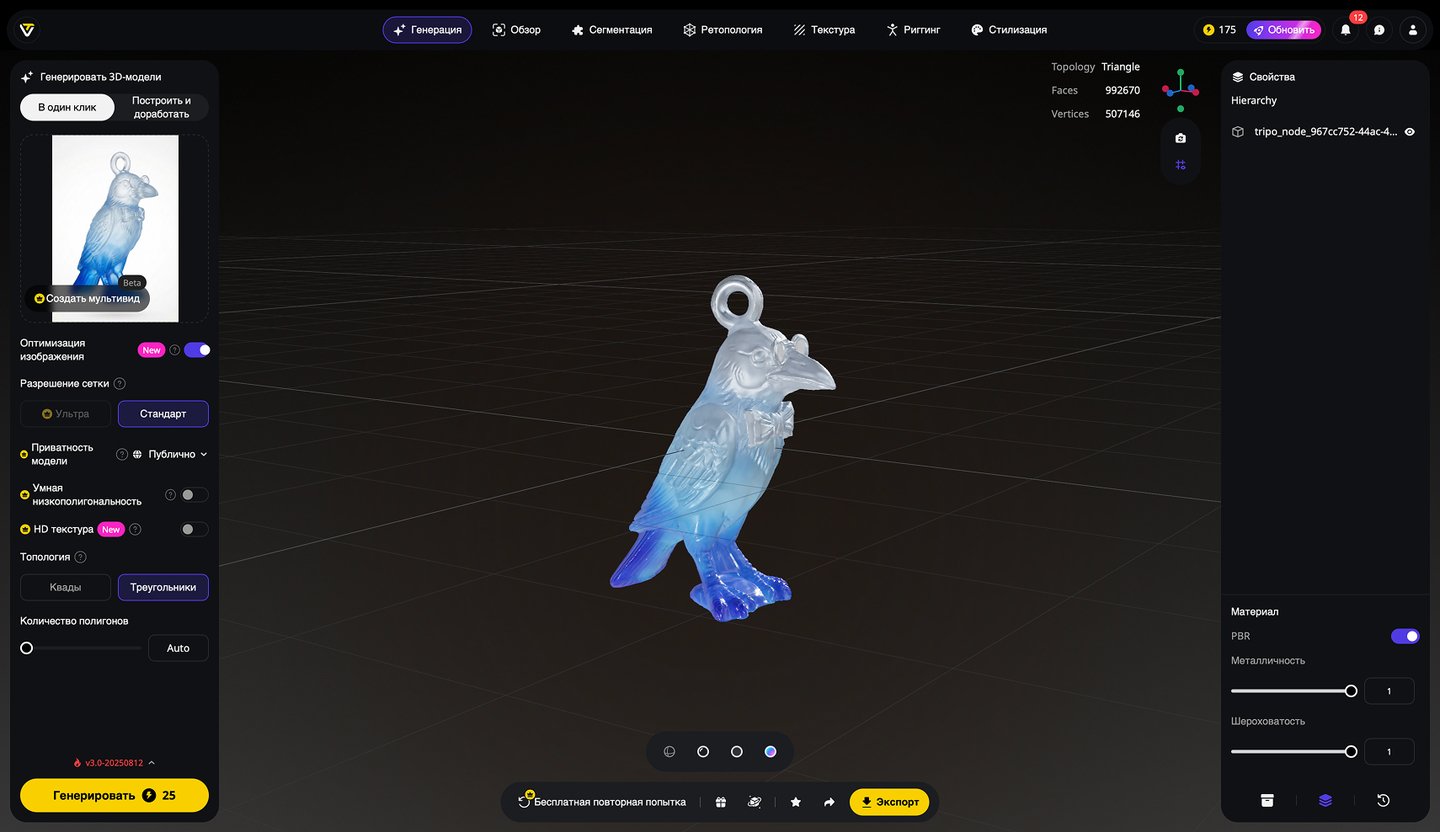 5. Генерация 3D-моделей на основе эскизов игрушек, создание скриншотов 3D-моделей, экспорт в формате STL. Инструмент: Tripo Studio.