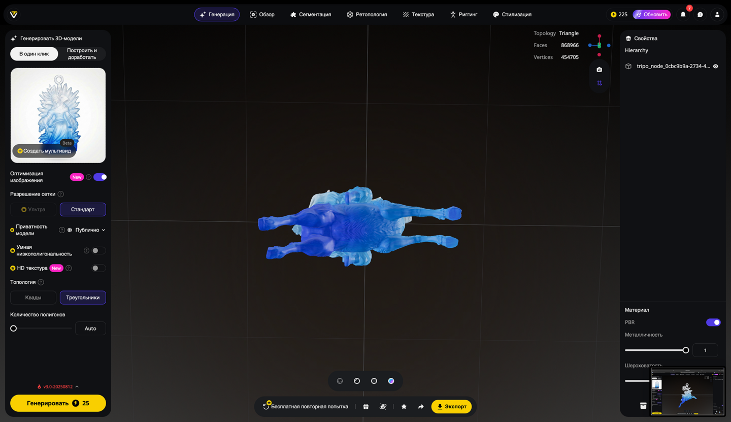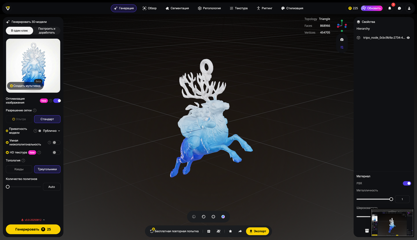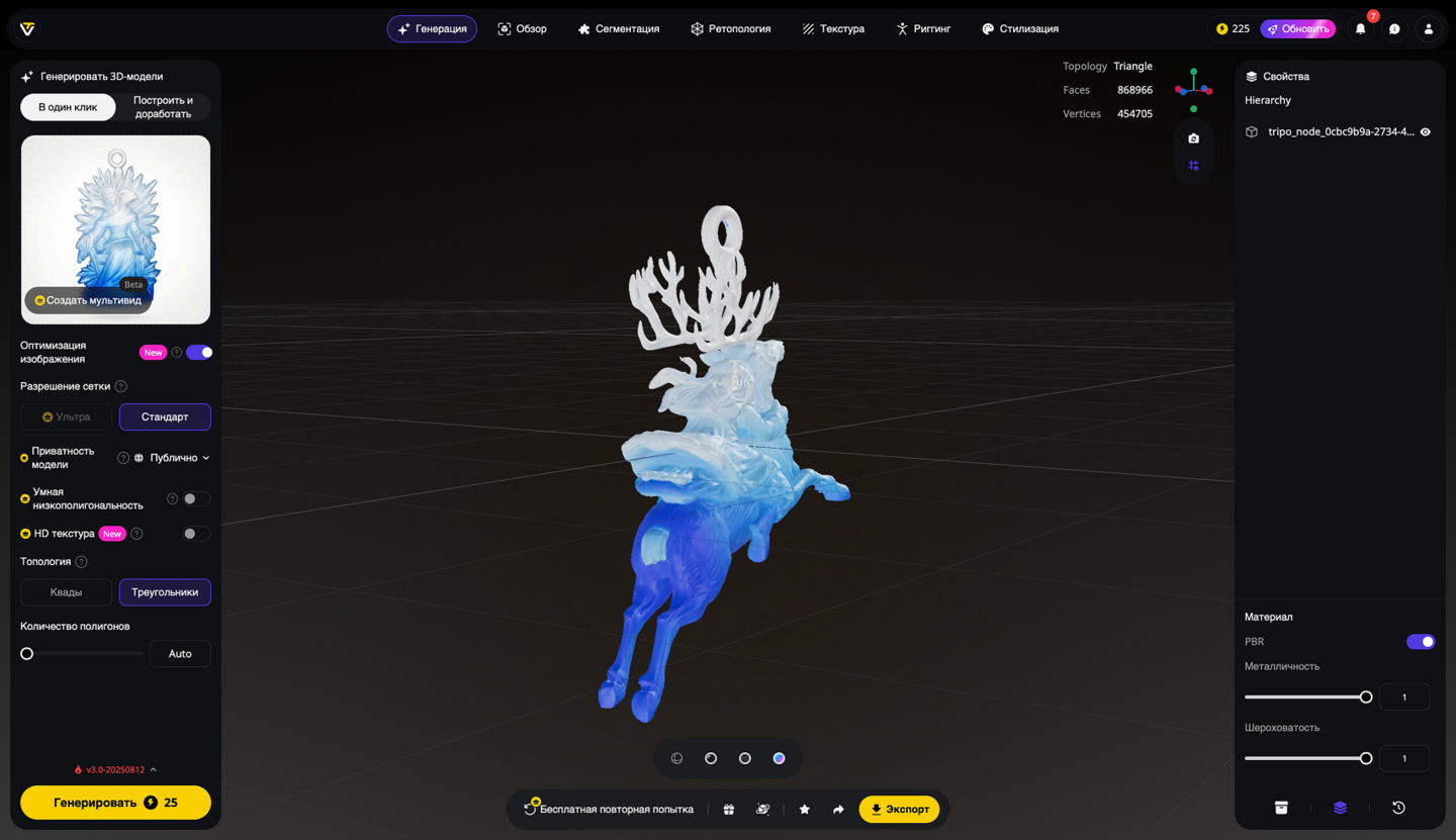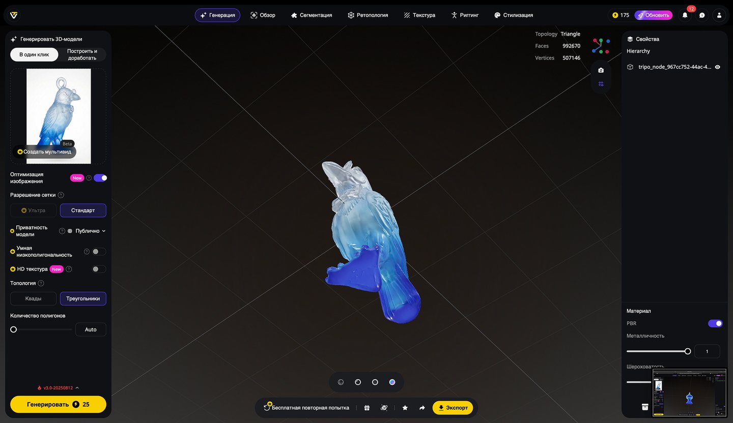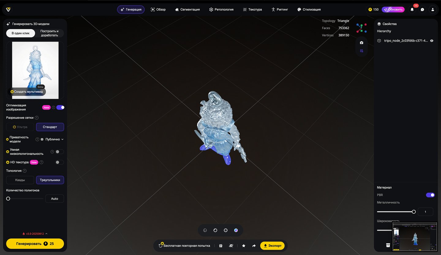 5. Генерация 3D-моделей на основе эскизов игрушек, создание скриншотов 3D-моделей, экспорт в формате STL. Инструмент: Tripo Studio.
