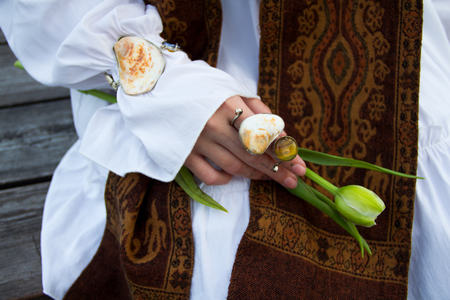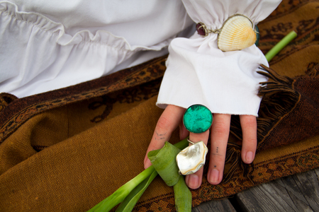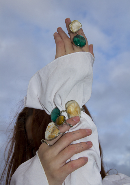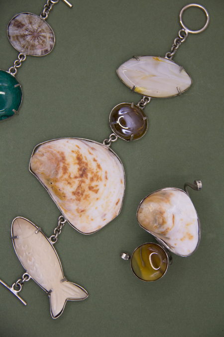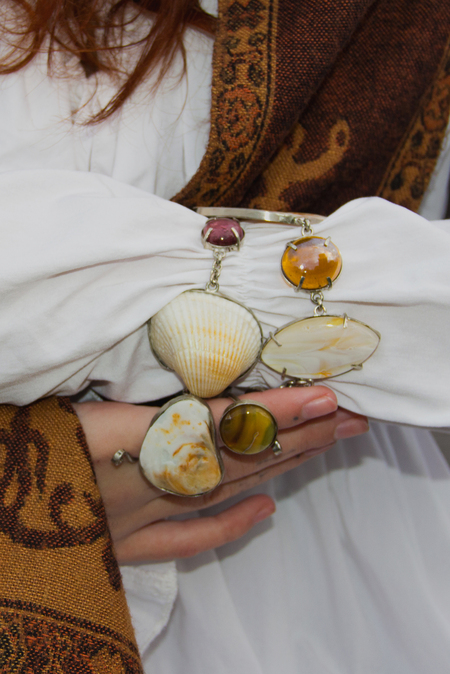 Каждое украшение в этой серии — это собранная мной память. Каждый элемент окантован металлом, как воспоминания, заключённые в нашу голову — туда, где они навсегда остаются. Все элементы нанизаны на одно изделие, идут друг за другом, будто узелки воспоминаний, связанные в одну цепь.