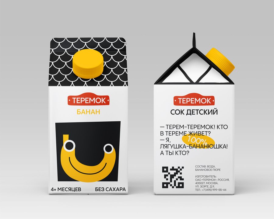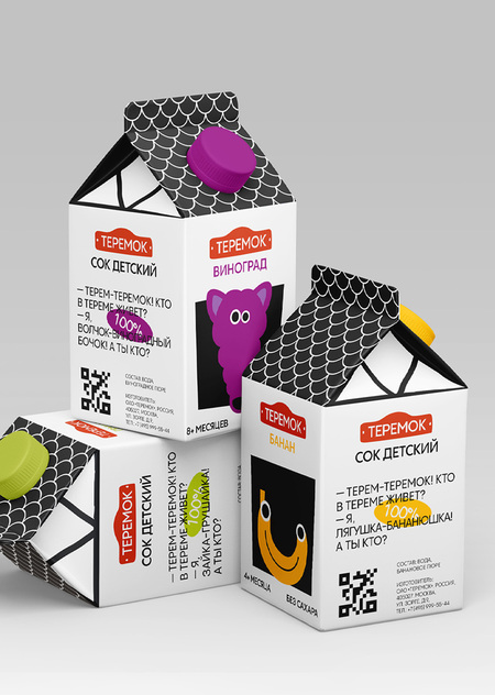 Сок «Теремок» — это маленький домик с фруктовыми героями внутри, созданный по мотивам русской народной сказки. Лягушка-Бананюшка, Зайка-Грушайка, Лисичка-Клубничка, Волчок-Виноградный Бочок и Медведь-Яблочко живут в сказочном мире натуральных соков — вкусно, полезно и весело для детей!