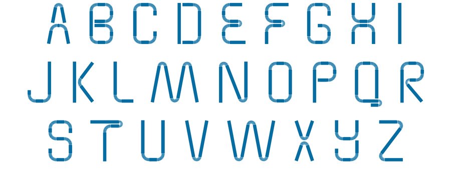 Шрифт вдохновлён коктейльными трубочками, линии остаются прямыми, а в местах сгиба появляется волна гофры.