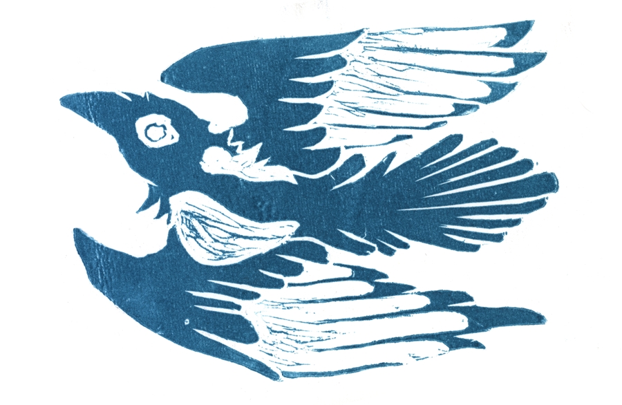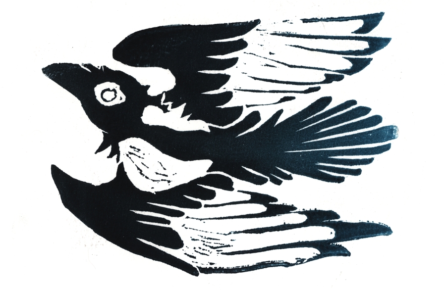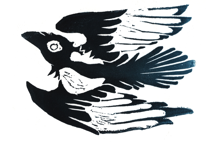 Сороки в движении, дерево остаётся. Их полёт напоминает круги на воде, постоянно меняющиеся узоры, в которых читаются зловещие знамения. Синее, голубое и белое передаёт мистическое настроение. Данная серия исследует эти образы пока птицы продолжают свой полёт.