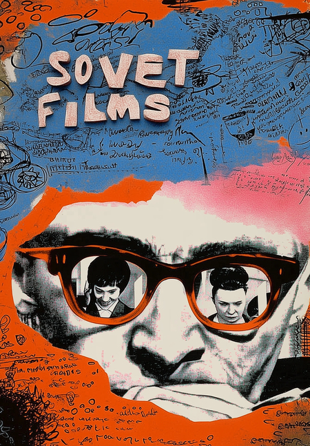 Midjorney генерация обложки проекта с помощью промта (a child’s drawing of the text «soviet films " written in crayon, on top of an abstract background with bold colors and shapes. the word is large and centered at eye level, surrounded by various doodles and patterns that resemble graffiti-style lettering. there’s a sense of energy and movement to it, as if the artist was expressing their thoughts or ideas onto paper. it has a playful yet slightly chaotic feel to it, in the style of jean dubuffet) и референса