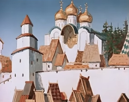 Фоны для большинства мультфильмов рисовались акварелью и гуашью. Акварель позволяла добиться полупрозрачности и плавных переходов, а гуашь обеспечивала яркие цвета и четкие детали. Задние планы выглядят очень живописно, особенно на контрасте с лаконично окрашенными персонажами. Они пестрят деталями — подробно прописанными растениями и архитектурой. Локациями чаще всего выступают дворцы и теремы, которые изображаются очень нарядными и обильно украшенными резьбой, росписью и другим декором. Фоны, так же как и персонажи, лишены условности и стремятся правдоподобно передать каждый элемент.