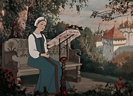 Виктор Васнецов, «Царевна Несмеяна». 1916 / «Сказка о мертвой царевне и о семи богатырях», реж. Иван Иванов-Вано. 1951