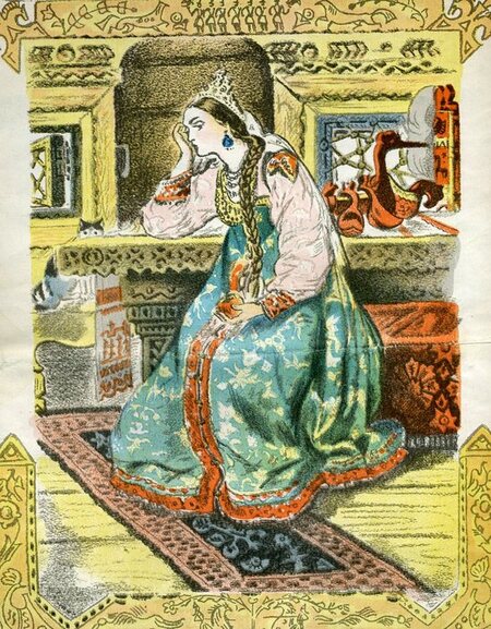 Татьяна Маврина, иллюстрация к «Сказке о мертвой царевне и о семи богатырях» А. С. Пушкина. 1949: https://ljplus.ru/img4/v/l/vladcoro/a009.jpg (дата обращения 25.11.2025)