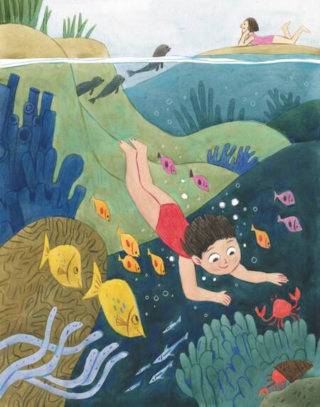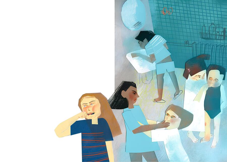 Фрагменты разворота из детского журнала «Чердобряк», номер про учителей, иллюстрация М. Фирсовой, 2023 г.