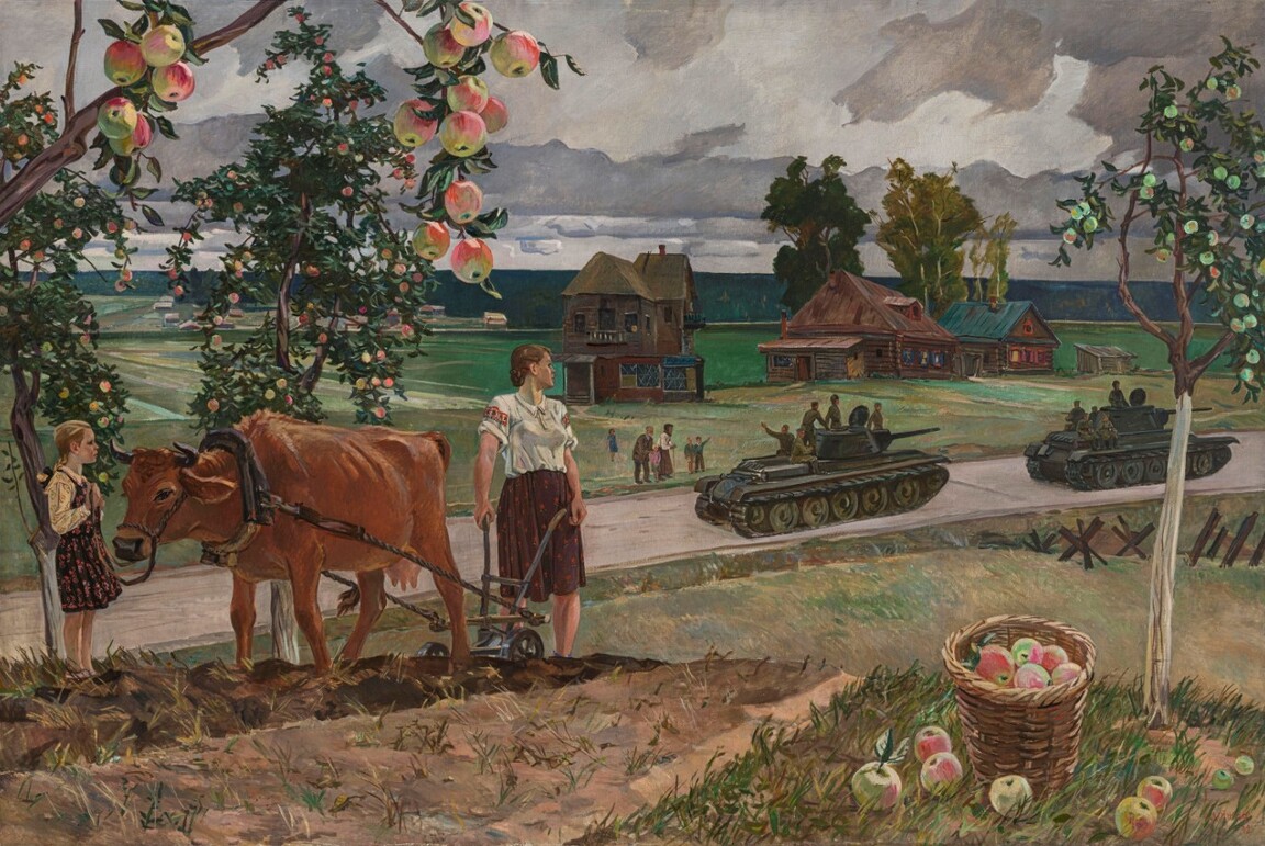 Самохвалов А. Н. «Сталинградцы (Город не сдается)» (1947); Дейнека А. А. «Народ в Великой Отечественной войне» (1948)