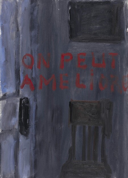Эрик Булатов утверждает: «Пространство — это свобода». Его слова, написанные красными буквами, парят на фоне неба. Движение облаков отделяет их от небесной глади, символизируя возможность преодолеть идеологические барьеры.
