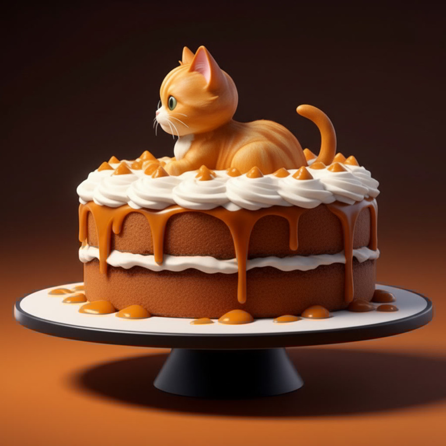 1. Название проекта: Модель торта с фигуркой котенка для 3D-печати.