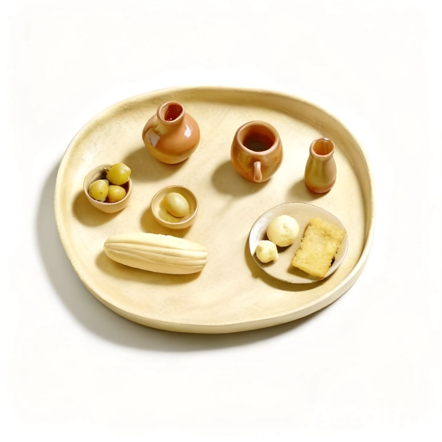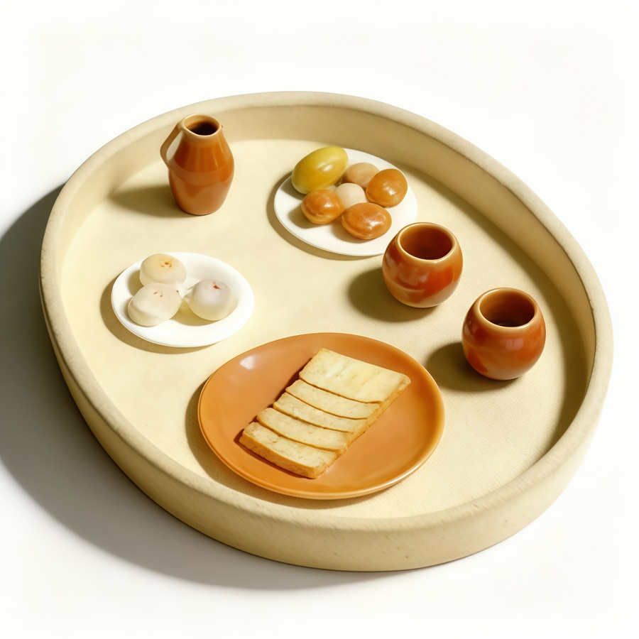 Проект представляет собой серию из пяти декоративных тарелок, где каждая тарелка выступает как самостоятельный фрагмент супры (грузинского застолья) — миниатюрный накрытый стол. В этой серии тарелка перестаёт восприниматься как нейтральная плоская поверхность для еды и превращается в рельефное пространство, насыщенное предметами и продуктами, которые работают как визуальные знаки ритуала. Еда здесь не иллюстрирует застолье напрямую, а выступает его символическим языком, считываемым через форму, ритм и композицию.