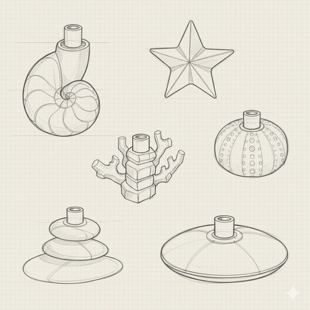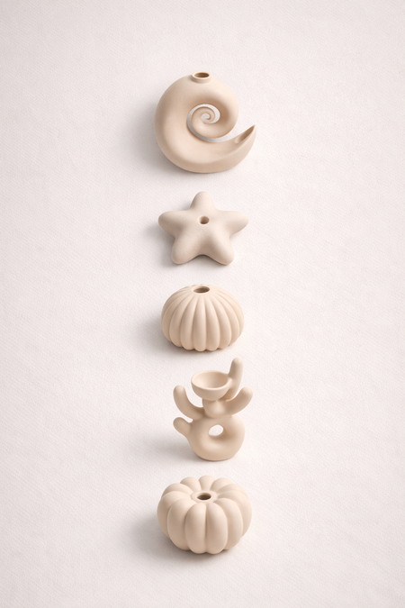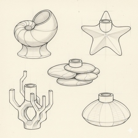 «Tidal Forms» — серия интерьерных подставок для арома-диффузоров, вдохновлённая морской средой и переведённая в язык абстрактной пластики: ритма, радиальности, симметрии и плавных объёмов. Формы отсылают к морским архетипам, но лишены буквальности и декоративности, благодаря чему воспринимаются как самостоятельные дизайнерские объекты, а не сувениры.