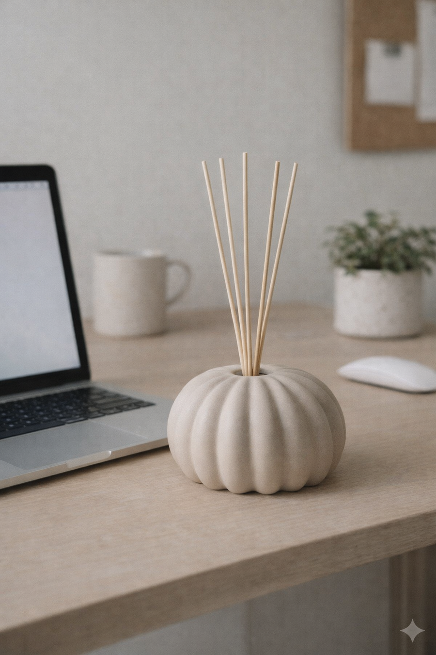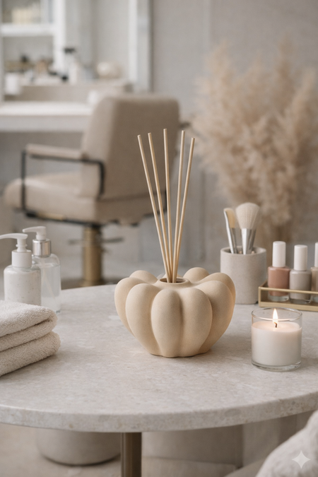Shell — подставка для арома-диффузора в форме абстрактной спирали с плавным подъёмом и центральным отверстием, ассоциирующаяся со спокойствием и глубиной.