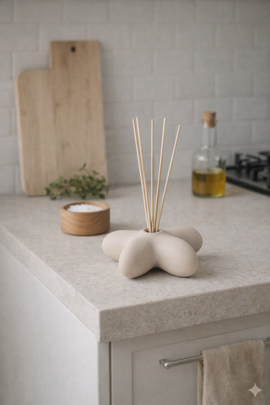 Coral — асимметричная подставка с абстрактной ветвистой формой и встроенной чашей для диффузора, ассоциирующаяся с ростом и жизнью.