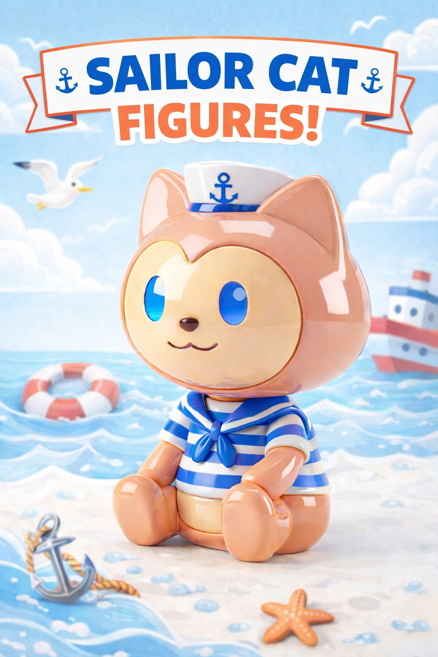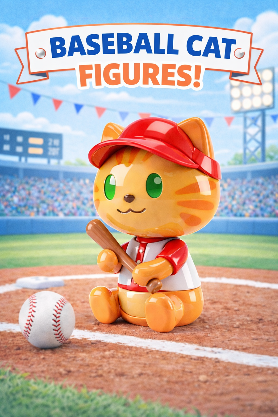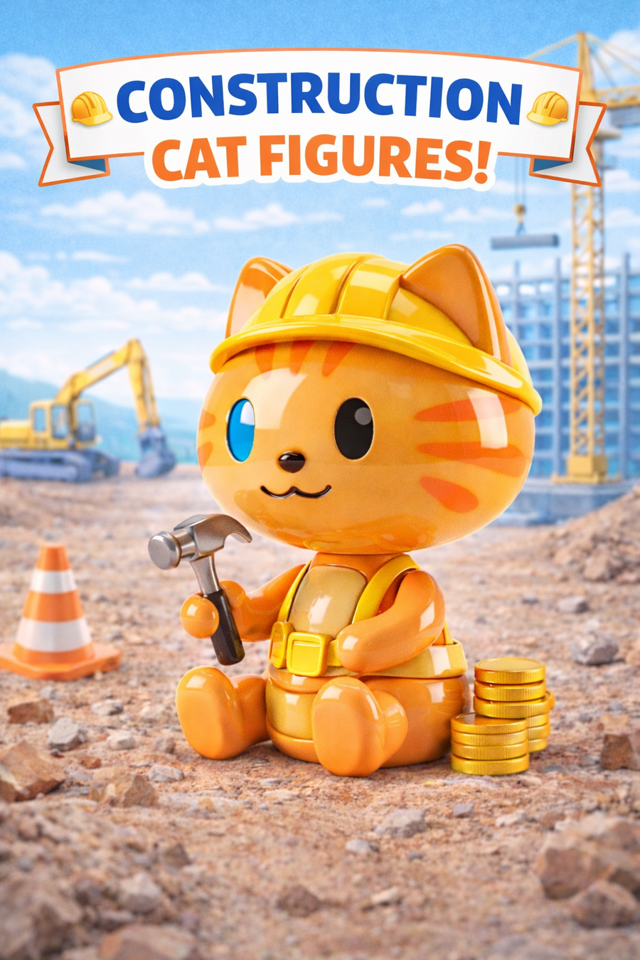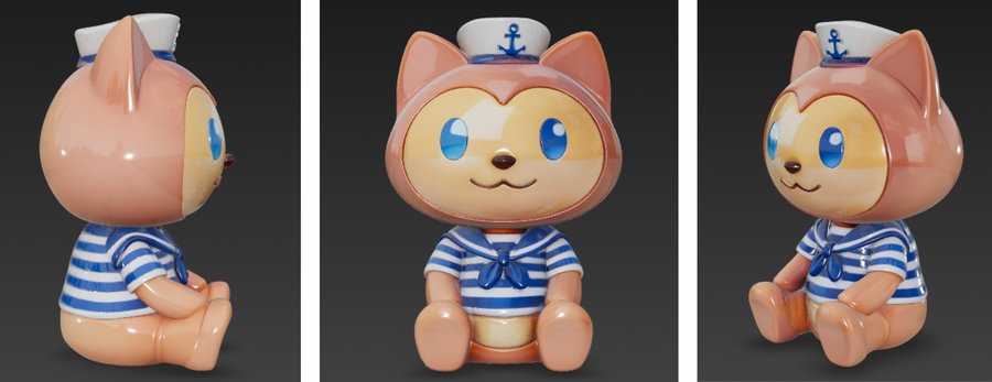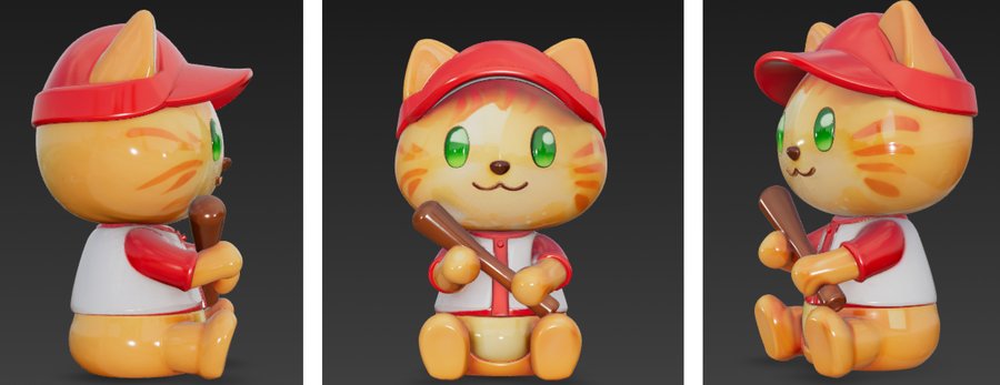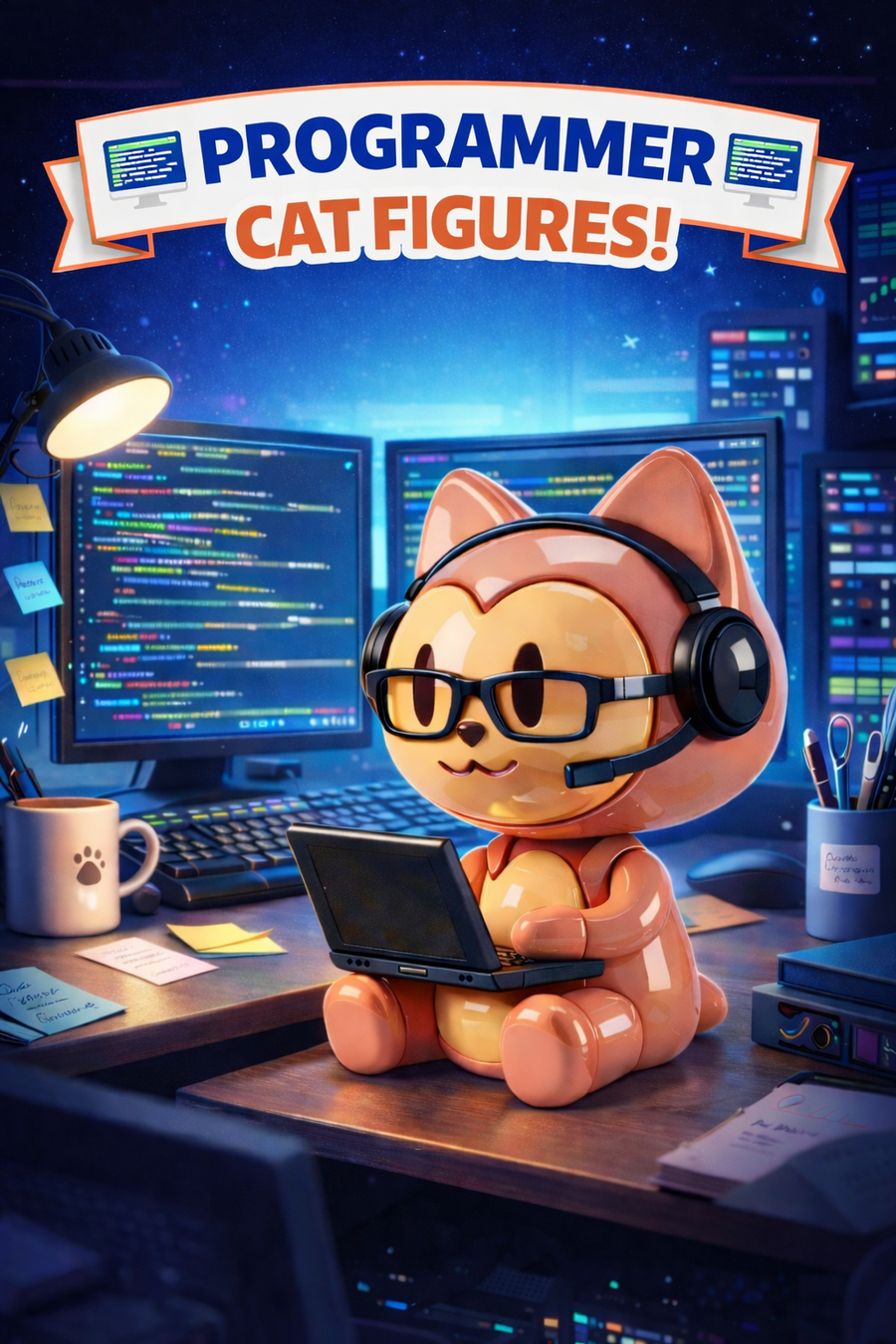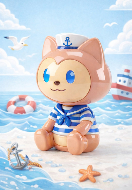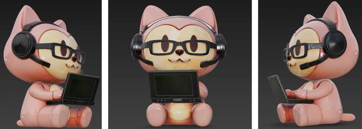 Промпт для первой фигурки: Cute stylized 3D cartoon cat figurine, toy-like character design, smooth rounded shapes, glossy ceramic / plastic texture, pastel color palette. The cat is sitting and holding an open laptop on its lap, laptop simple and minimal, no logos. Big head, small body, short legs, friendly smile, asymmetrical cute eyes. Inspired by kawaii designer toys and collectible figurines. Clean white background, studio lighting, soft shadows, high quality 3D render, product shot, centered composition.