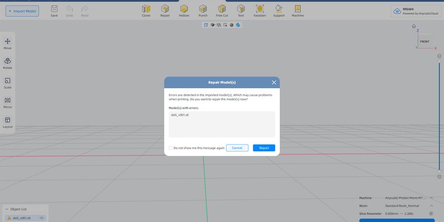 Подготовка куклы к печати в Anycubic Photon Workshop