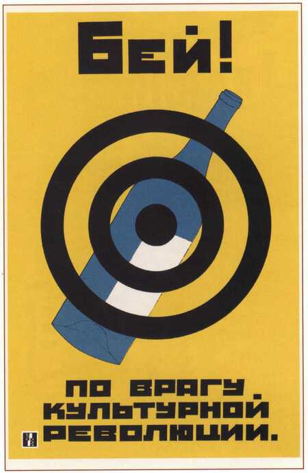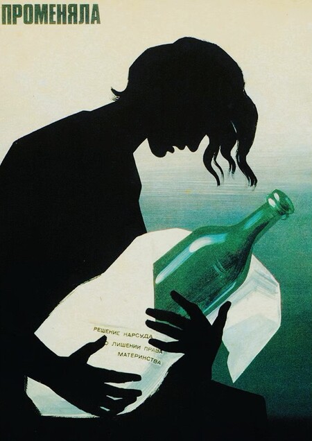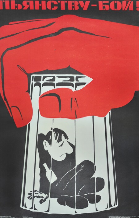 На плакатах, осуждающих беспросветное пьянство, в композиции нередко фигурируют бутылки и их силуэт как образы антисоциального, и даже губительного, приводящего к смерти.