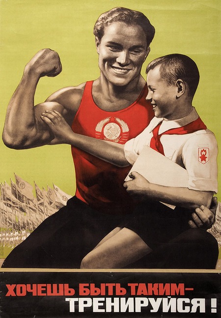 И напоследок плакаты рекламируют здоровый образ жизни: рисуют подтянутые фигуры с румяной кожей, лишённые пьяной красноты и всем своим видом показывающие, что спорт — лучшая вещь, что случалась с ними в жизни.