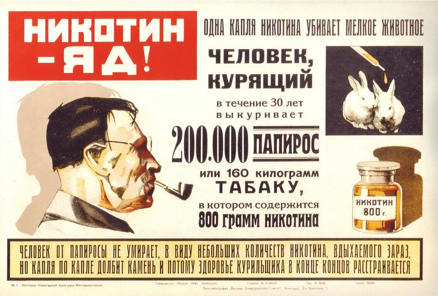 Свою гипотезу я выстраиваю так: алкогольная и табачная информагитка и агитация к бытию здоровым представляют собой не что иное, как рекламу в чистом виде. Плакаты доносят информацию кратко и чётко, снабжая сообщения яркими и запоминающимся образами, отпечатывающимися в памяти. Можно даже проследить конкурентное давление со стороны некоторых ЗОЖ-афиш, показывающих вредоносные последствия нездоровых привычек и решительно требующих от них отказаться.